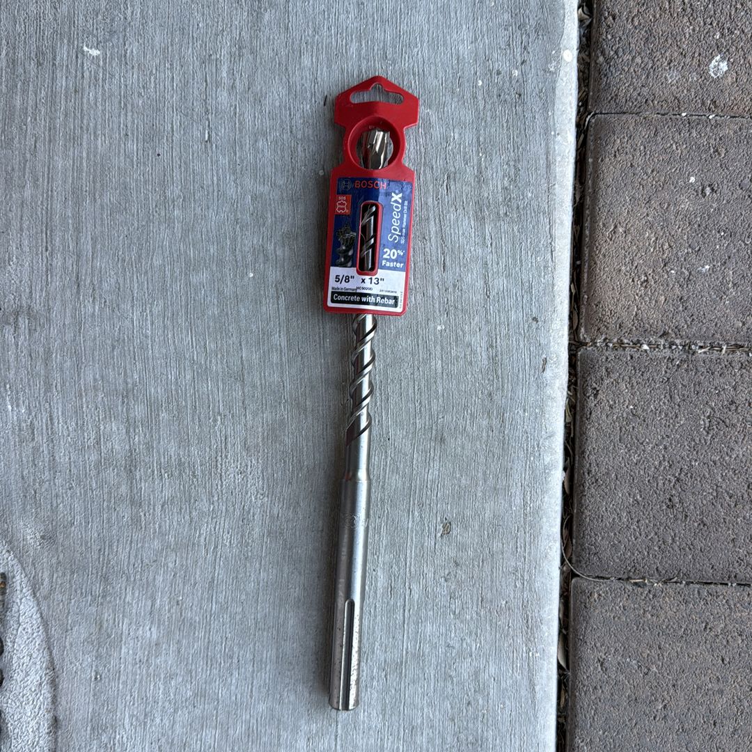 Brand new Bosch HC5020D (or HC5020) 5/8 inch x 13 inch SDS-Max carbide rotary hammer drill bit. Never used, in excellent condition—perfect for drilling through tough concrete, including with rebar reinforcement. Key specs: • Diameter: 5/8” • Overall length: 13” • Usable/flute length: 8” • Shank: SDS-Max • 4-cutter carbide tip for fast, clean holes and longer life • Active centering tip for quick, accurate starts • Made in Germany – genuine Bosch quality Ideal for pros or DIY with SDS-Max rotary hammers (Bosch, Hilti, DeWalt, Makita, etc.).
