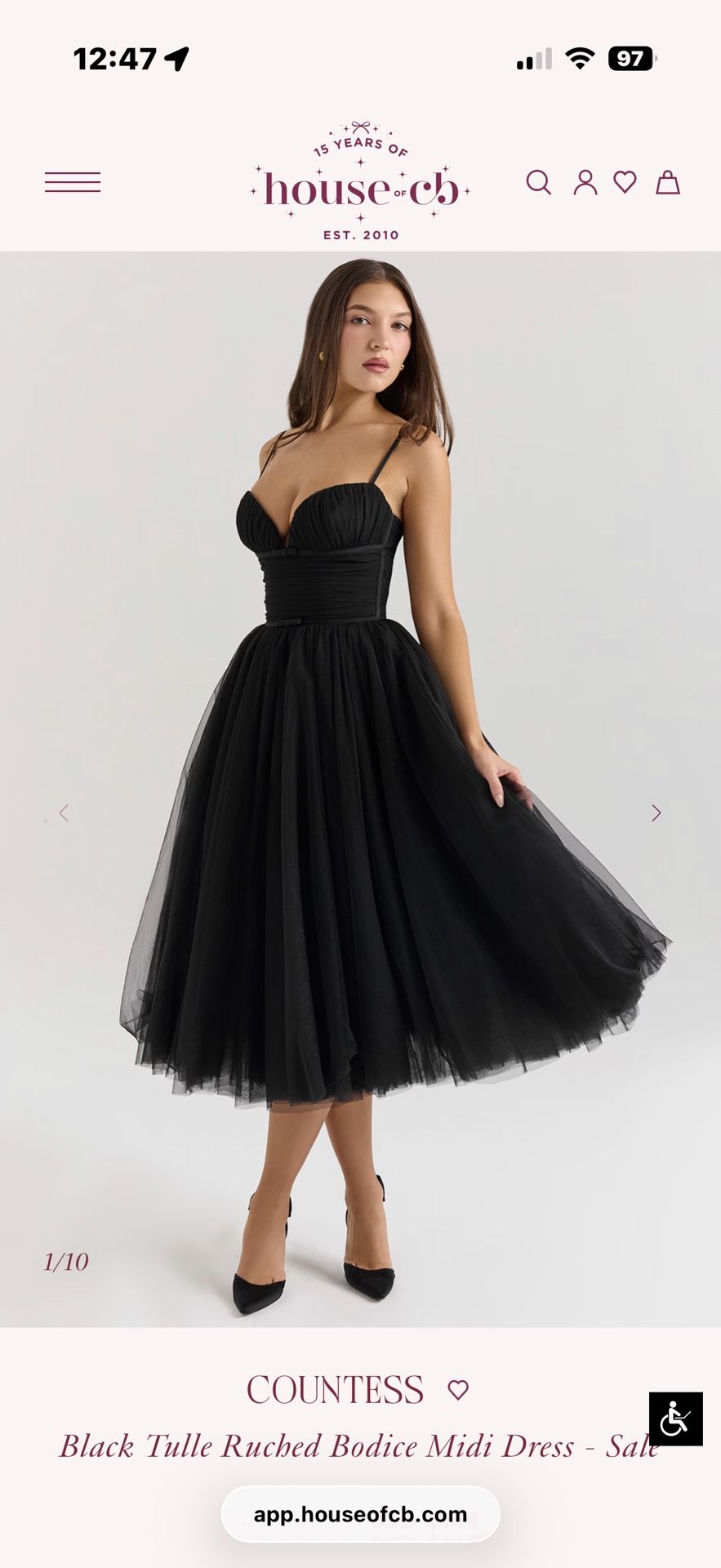 Black Tulle Ruched Bodice Midi Dress - House of CB