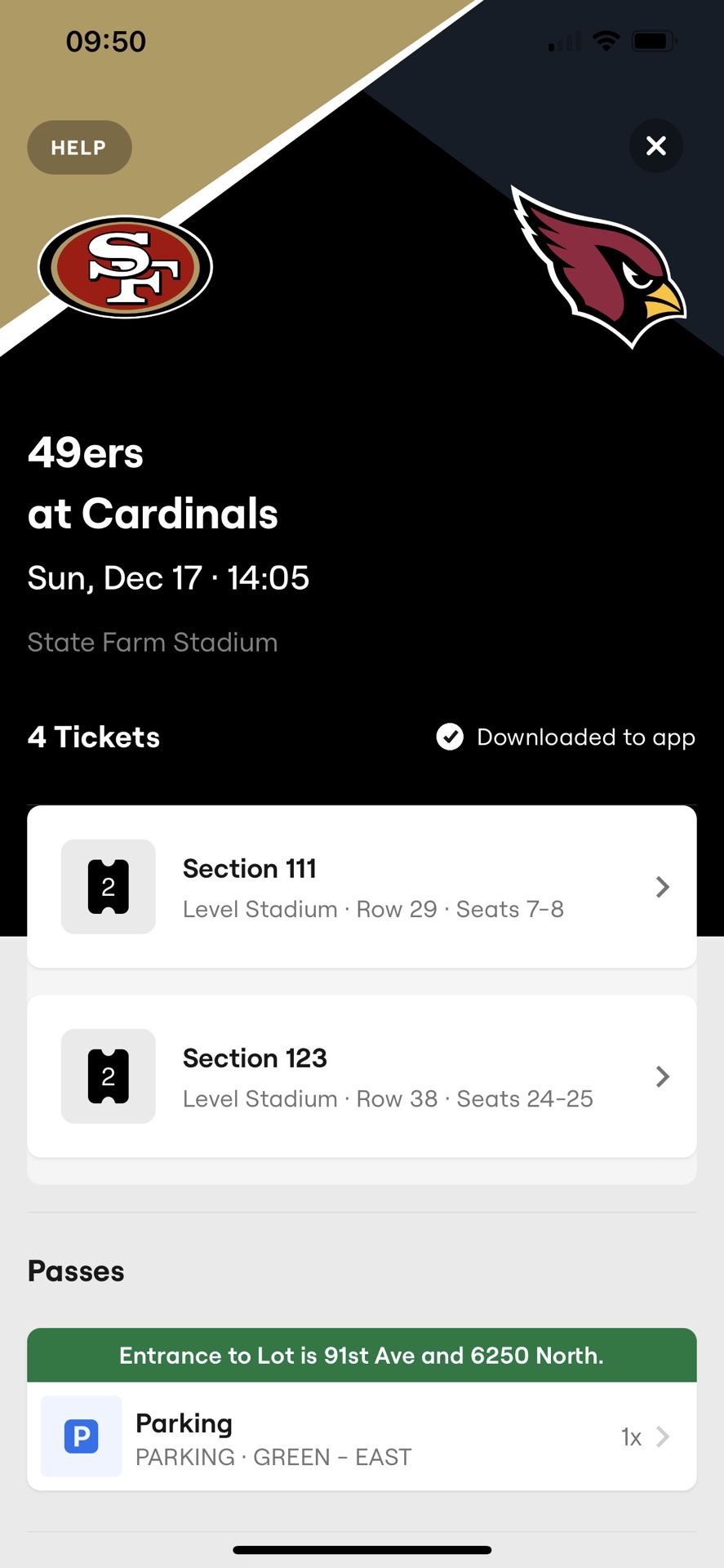Tickets to the 49ers game click on the picture to see the location. There are four tickets and two separate locations.