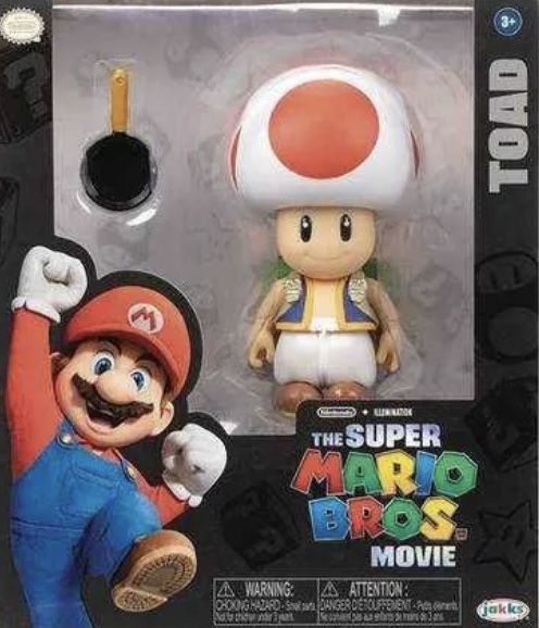 The 2023 The Super Mario Bros. Movie Toad 5" Action Figure is part of the movie franchise series and is produced by JAKKS Pacific. This multicolored Toad character comes with a frying pan accessory, suitable for ages 12-16 years. The action figure is themed after "The Super Mario Bros. Movie" and stands at a height of 5 inches, featuring boxing as the sport theme. This deluxe action figure is boxed and includes detailed features, making it a collectible item for fans of the Super Mario Bros. series.