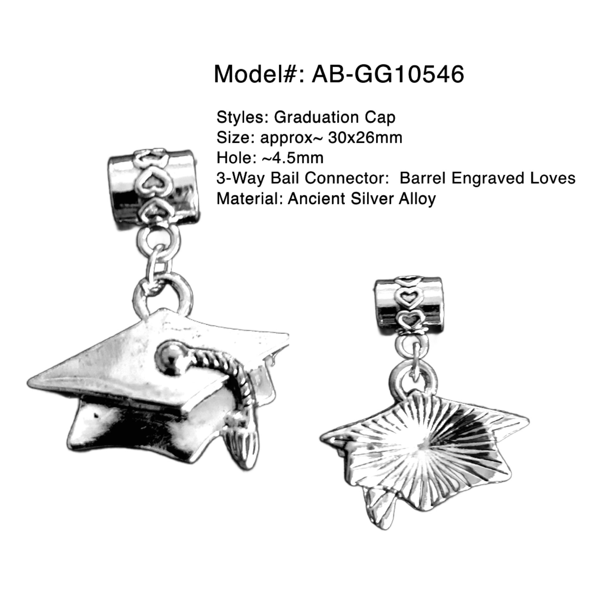 Listing price is for 1 piece pendant charms for graduation cap that fits PANDORA charm bracelets, necklace and any DIY beading jewelry/earring making. Handmade Charms. Model#: AB-GG10546 Styles: Graduation Cap Size: approx~ 30x26mm Hole: ~4.5mm 3-Way Bail Connector: Barrel engraved loves shapes Material: Ancient Silver, Zinc Alloy