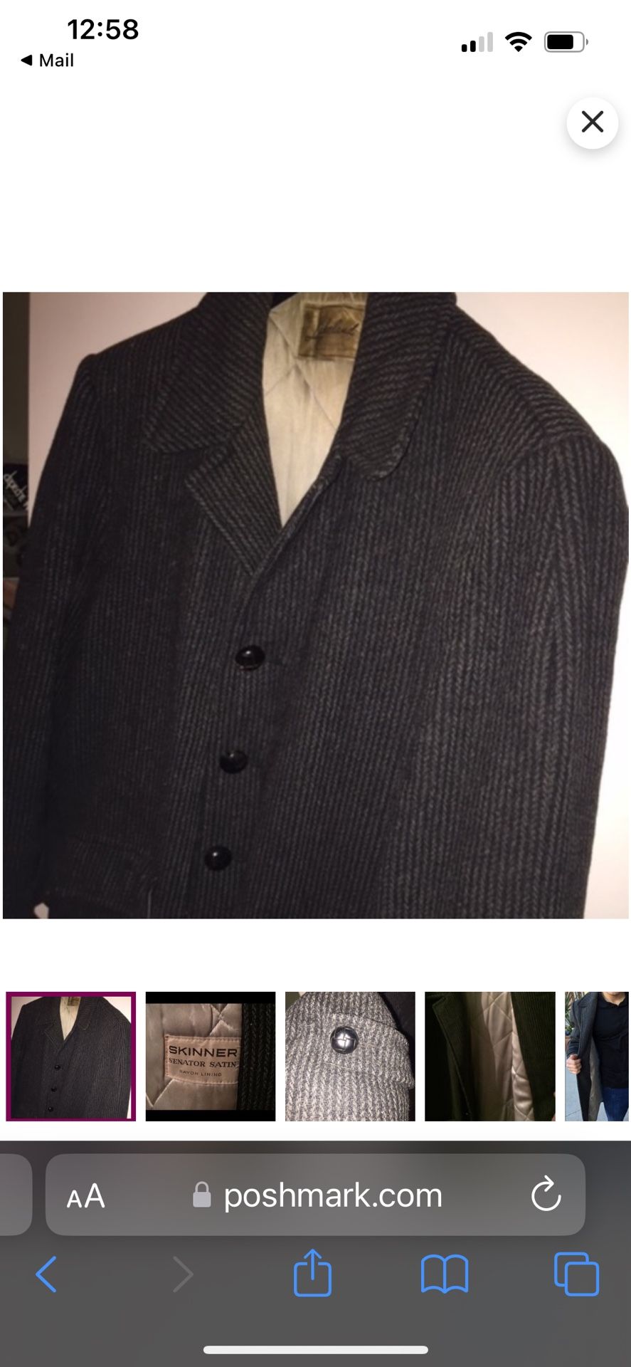Skinner brand men’s jacket Black & Grey pin stripe Satin lined Men’s large (med/large) This jacket cost $220 at Neiman Marcus’s back in the 60’s Super pimp! Wouldn’t be selling it if I didn’t need to… Must see to appreciate