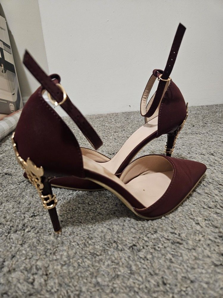 Shoes are like new with only being worn once and very light wear on the soles. Shoes are a size 9 in women's.