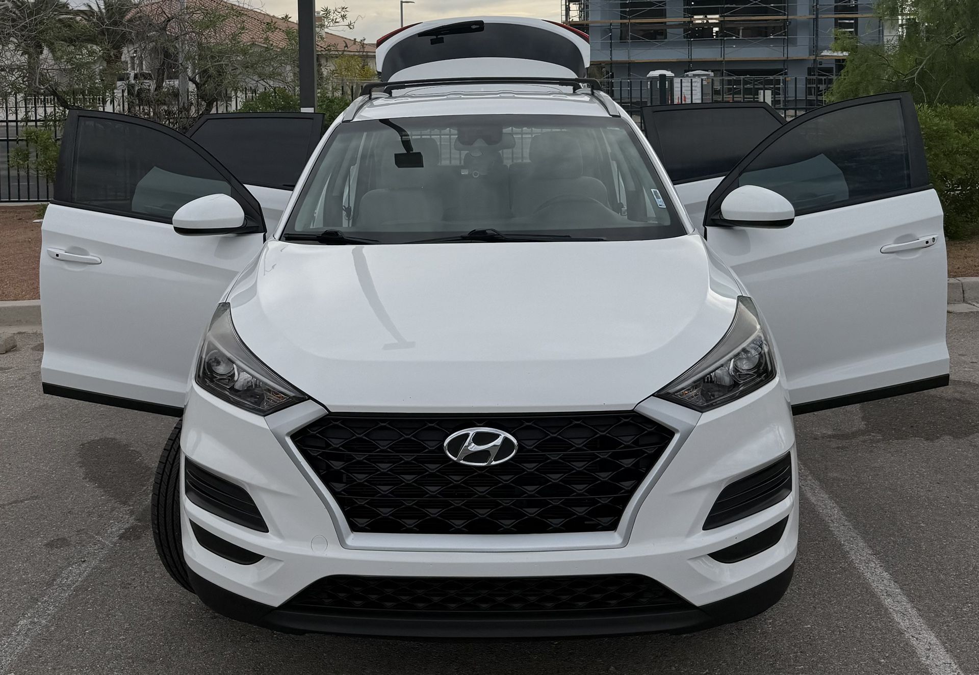 2019 Hyundai Tucson Value Edition AWD (HTRAC) – Original Owner. Dash-cam not included. White | 80,771 miles | AWD | Clean title in hand Original owner, lady-driven, well maintained. Very clean interior, runs great. Features: • Heated front seats • Fully adjustable driver seat w/ lumbar support • Brand new Michelin tires (May last year) • Llumar ceramic tint • Tow hitch • Roof crossbars • New wiper blades • Front and rear brakes replaced, re-surfaced rotors • Infotainment works perfectly Extras included: • Wheel locks • Emergency kit • Spare tire & jack • Owner’s manual • Cargo net & reversible cargo mat • Car cover Condition: • 2021 Accident history (front bumper & hood replaced — professionally repaired) • Small dent right rear panel (paint chipped) backing into a pole • Left headlight assembly may need replacement (per Hyundai) • Normal exterior wear from driving $14,500 OBO Located in Las Vegas Serious buyers only please.