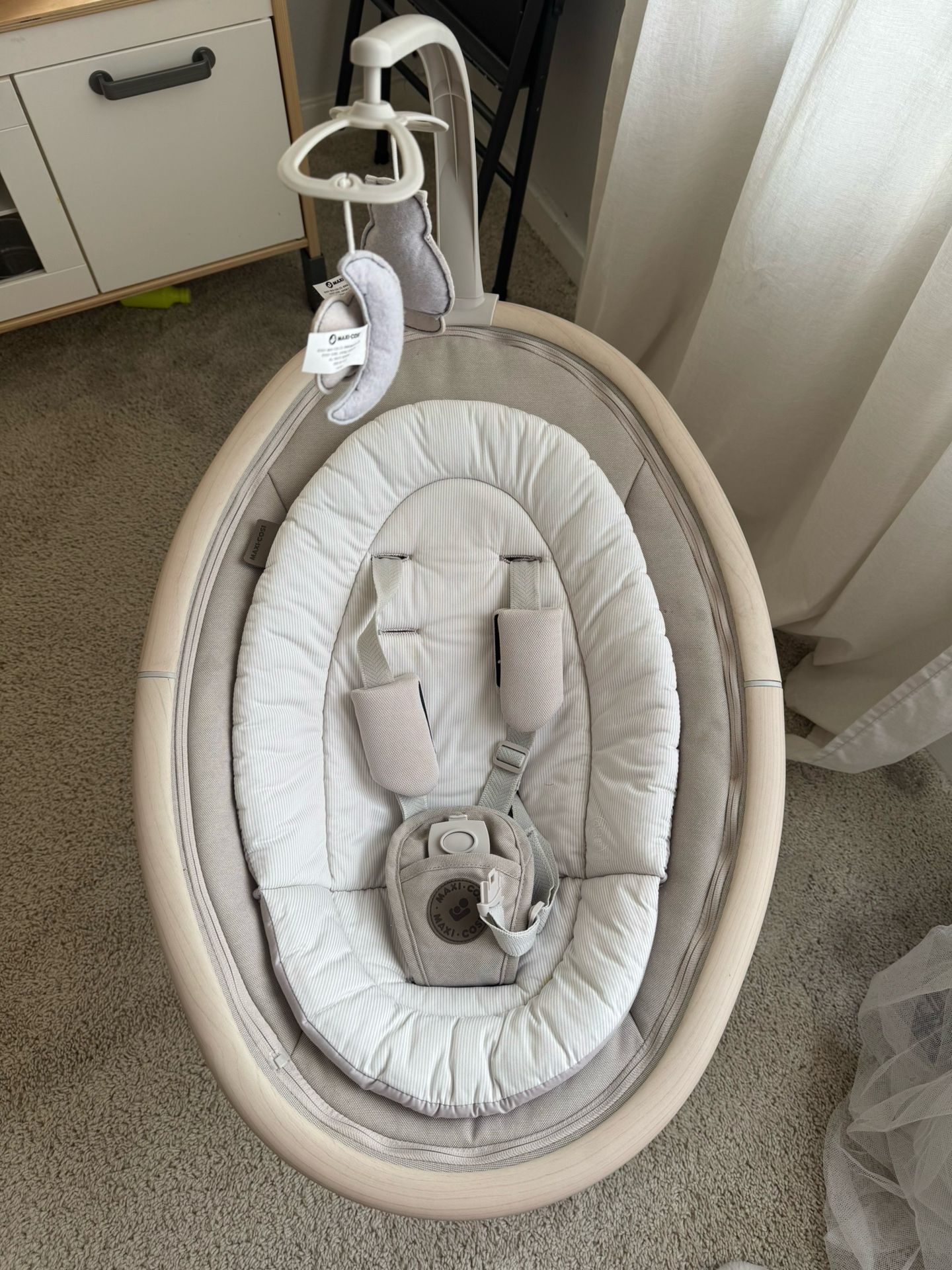My baby grew out of it, I no longer need it. Has multiple Swing Motions, Reclining Seat, Removable Head/Body Support, Machine Washable Seat Pad, Ability to Plug In, Adjustable Speed Settings, Battery Operated, Sounds and Songs, Folds for Easy Transport and Storage
