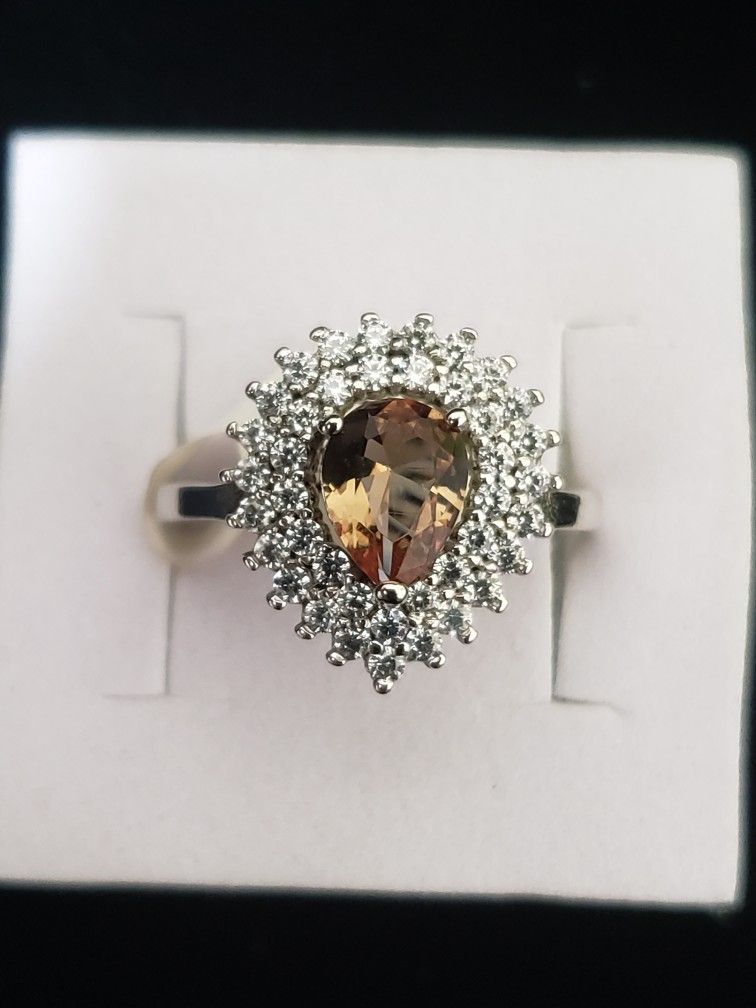 Sterling Silver Ring. Weight 4.35gms Width 13.6mm front and 1.4mm back Stones are CZs not Diamonds. Size 7 100% Authentic Silver Ring.