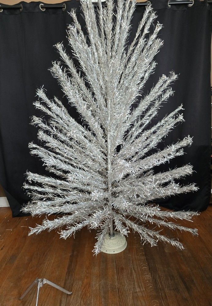 Tree turner is working. 152 branches, few branches missing some tinsel but all is there. Box is damaged but still holding all the pieces. Original stand included. Open offers. Please research before offering. Pick up only