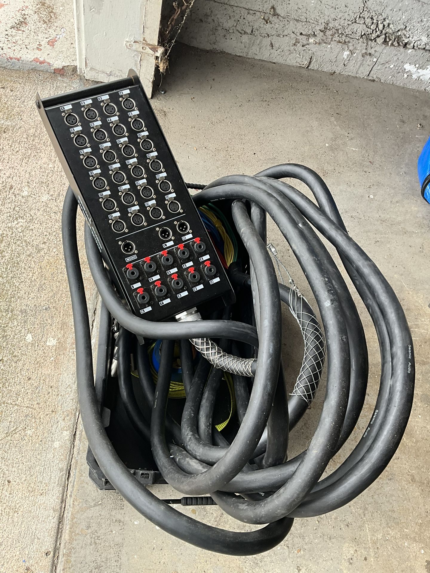 Like a new 5 times used 24 Channel 50' Snake Cable (Compatible with PreSonus 24.4.2 Digital Mixer) Model #: SAPSNS-24-3x10x50 Works with Presonus StudioLive 24.4.2 Digital Mixer Sends: 24 XLR Connectors Returns: 3 XLR Connectors & 10 TRS 1/4" Length: 50 Feet Weight: 41.5 lbs Condition: NEW Fantail and stage box are both clearly numerically labeled Fantail is color coded as well 100% individually shielded pairs 22 gauge heavy duty conductors Heavy duty steel stage box with handle High quality XLR connectors at both ends Heavy duty strain relief at both ends One Year Warranty The SAPSNS series of Seismic Audio snake cables were designed to match up perfectly with the Presonus StudioLive Digital Mixers, as well as other popular mixers.. The SAPSNS-24-3x10 series is an ideal snake for those that own the Presonus StudioLive 24.4.2 Digital Mixer. This snake box and fantail matches up perfectly with the connectors on the back of the Presonus 24.4.2. This snake has 24 XLR inputs, 3 XLR Outputs (Two for your Main Outputs and one for your Mono Output), and 24 TRS 1/4" Aux outputs. Great for studio or live performances. These snakes provide maximum flexibility by offering both XLR and 1/4" connections for the returns. High quality XLR connections, easy to read color coded wires on the fantail. Rugged steel box to withstand the rigors of the road. 22g Oxygen-Free Copper (OFC) conductors for enhanced signal clarity and superior RF rejection.