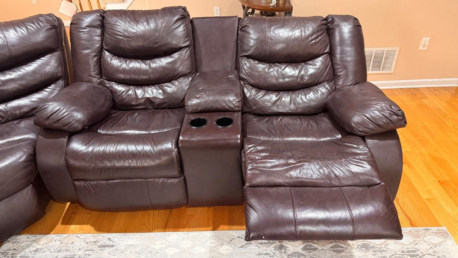 Italian Leather Sofa/Loveseat with Electric Recliner (2-Seater) – Ashley’s Furniture Gently used and in very good condition, made with top-quality Italian leather from Ashley’s collection. Features a smooth electric recliner with two cup holders, perfect for relaxing or movie nights. Ideal for a living room or media room. Bonus: I also have a 3-seater sofa and wedge available to complete the set (sold separately). Please DM for pricing. Pickup only from Piscataway.