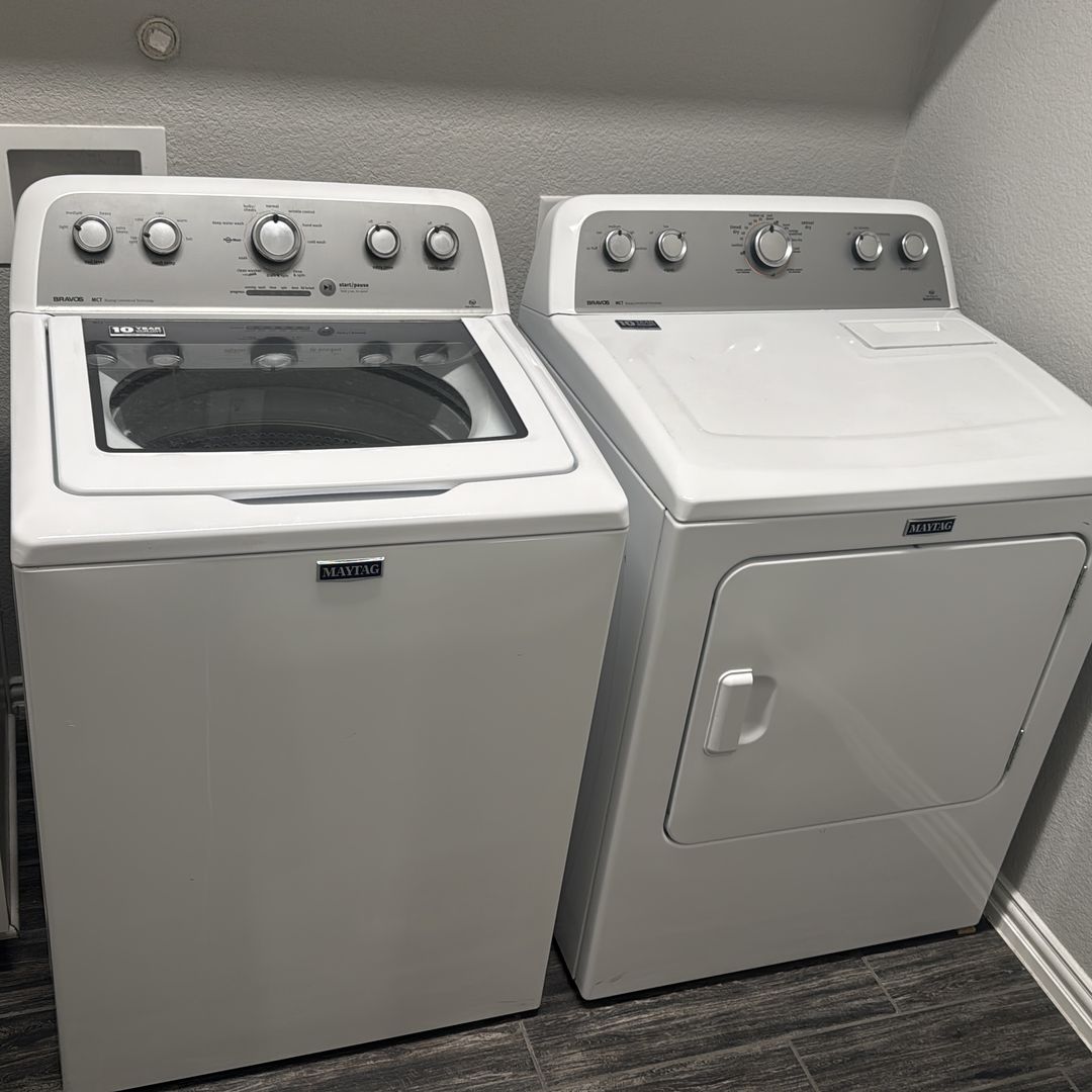 White, both work good, no issues. Washer is top loading. Available for pickup on 2/22