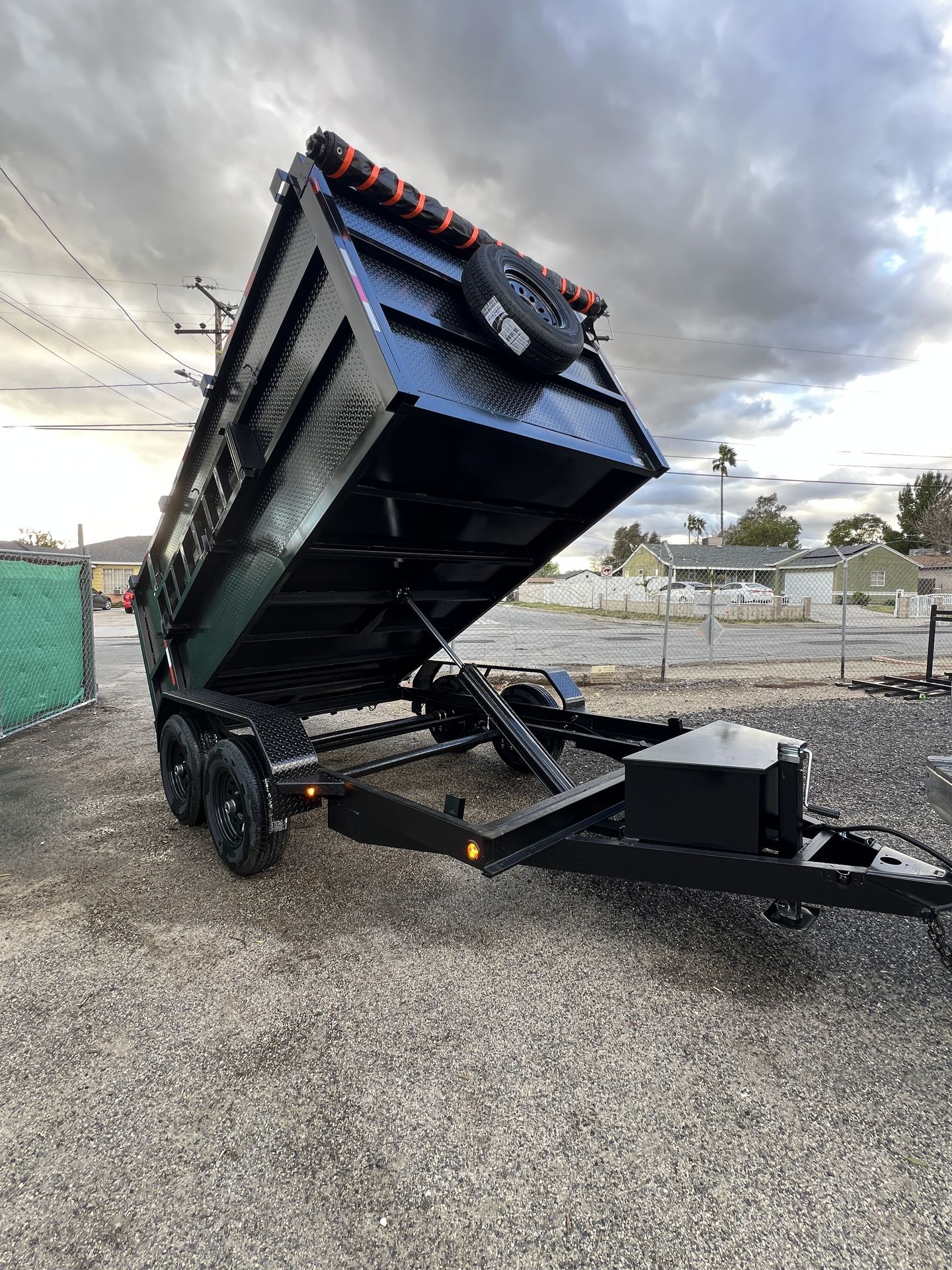 2026 Hydraulic Dump Trailer Diamond Plate Height: 4’ Length: 12’ 6000 lb. Axles with brakes on rear axle. Ramps and D-rings installed. Located in Fontana 92335.