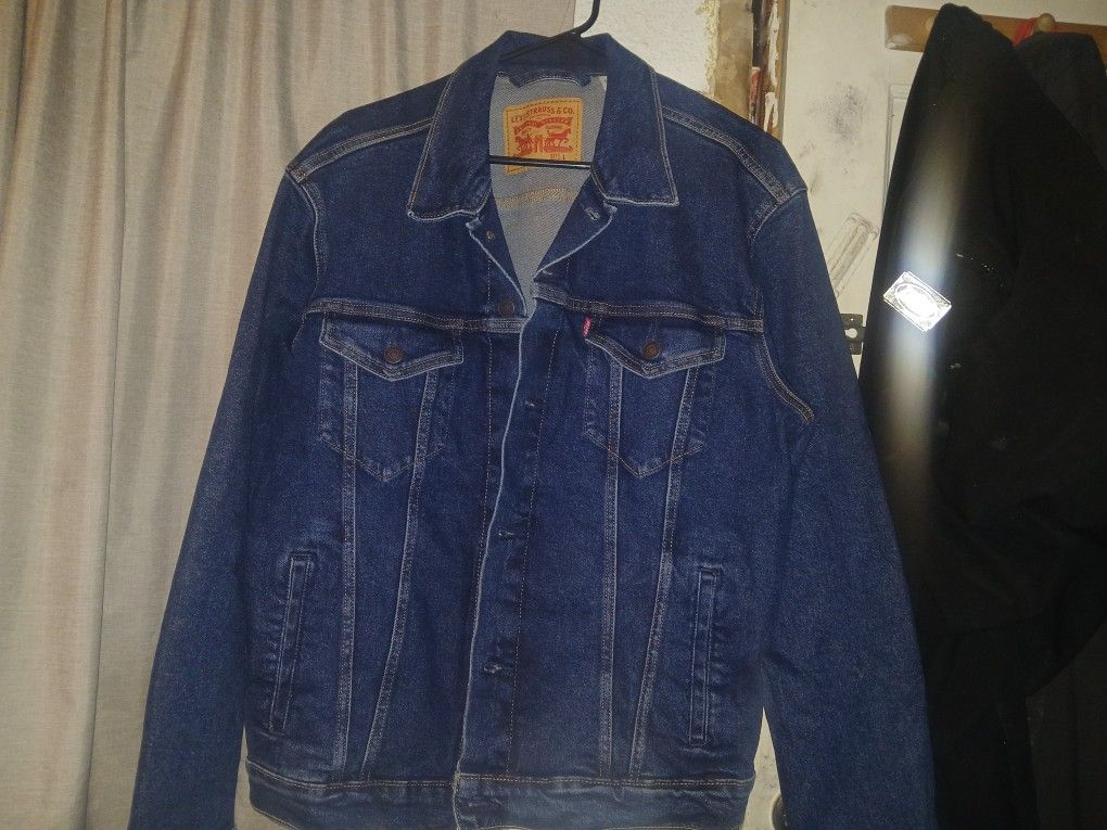Brand new never worn Levi trucker jean jackets. 1 is a dark blue and the other is an acid wash one both size large. Asking $60 for both