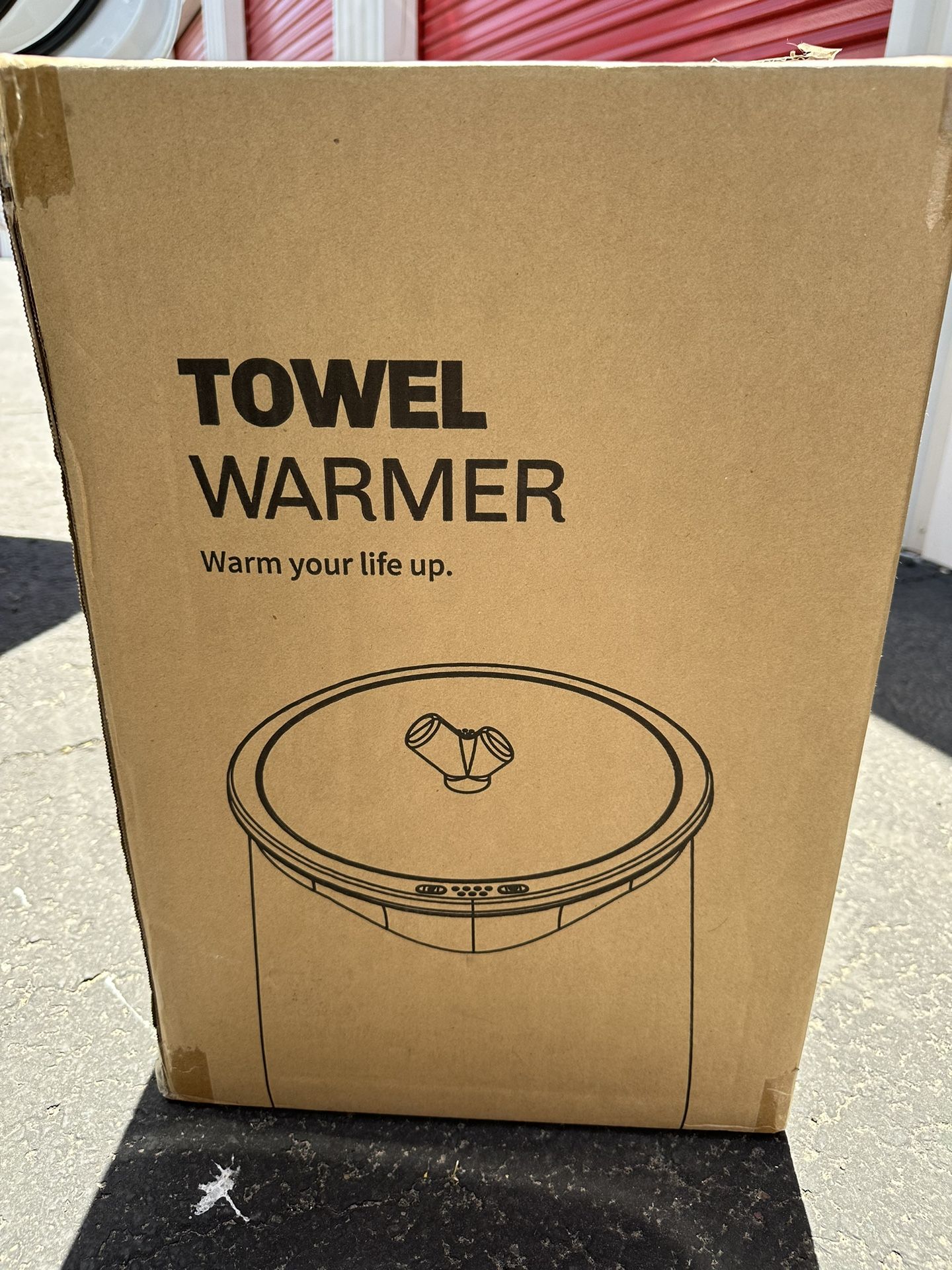 Brand new never used- amazon product reviewer. Bought for $140 selling for $90. Towel Warmer, Heated Towel Warmer Bucket for Bathroom, Large Towel Warmers for Bedroom, Auto Shut Off, Fits Up to Two Oversized Towels, Bathrobes, Blankets, Pajamas Gifts for Mom,Dad,Him,Her white