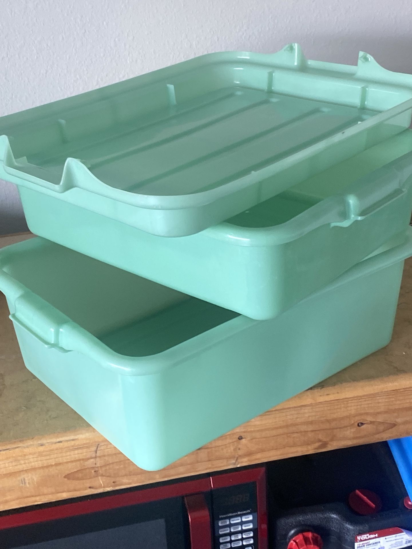 I have food grade bus-tub sold separately or you can purchase together, 20”x15”x7” withe inserts and tops one green, one blue.