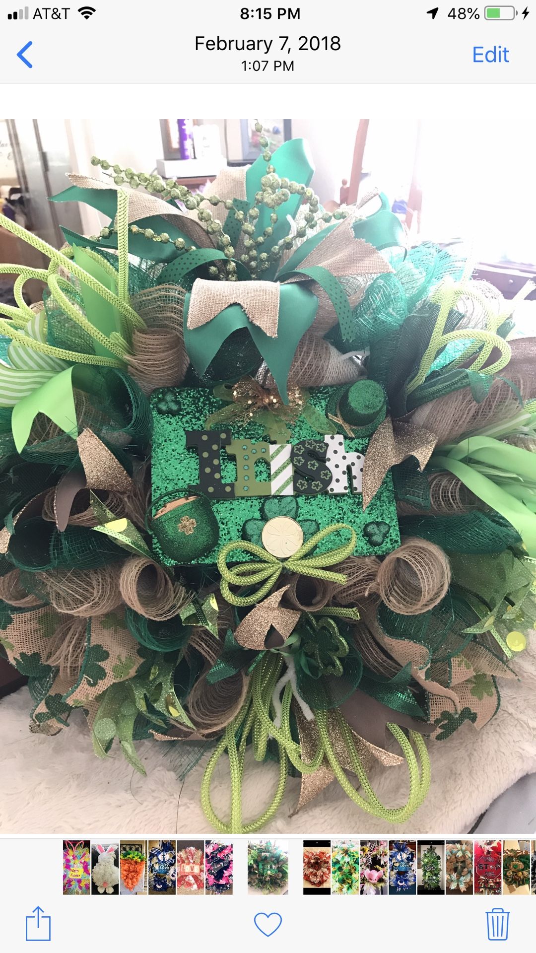 I custom make wreaths. Get your St. Patricks Day wreath now before its too late!