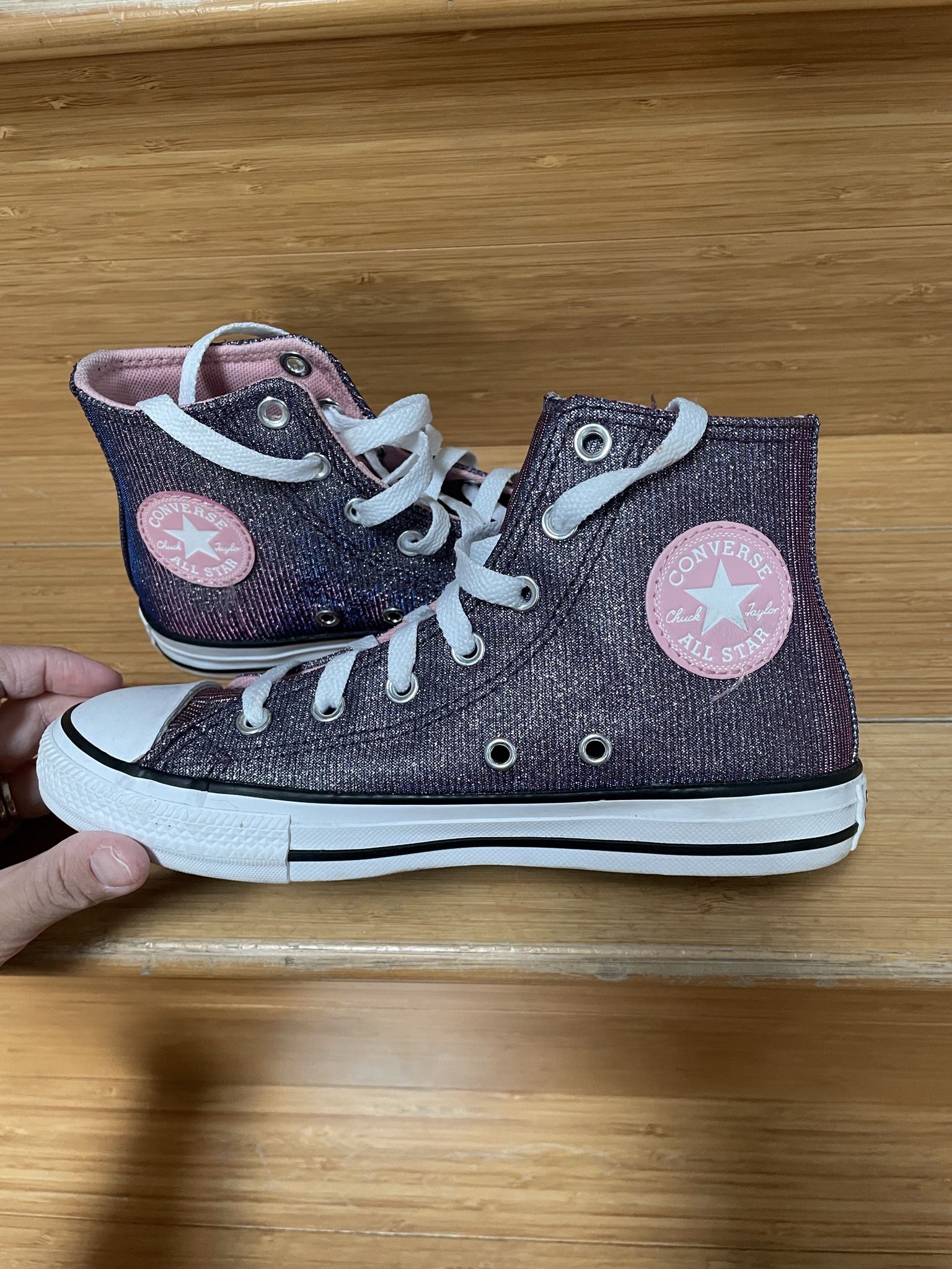 Girls Chucks (Converse) high tops in excellent condition. My daughter walked inside the house with these but never wore them. Size 2. Perfect school shoes. $25