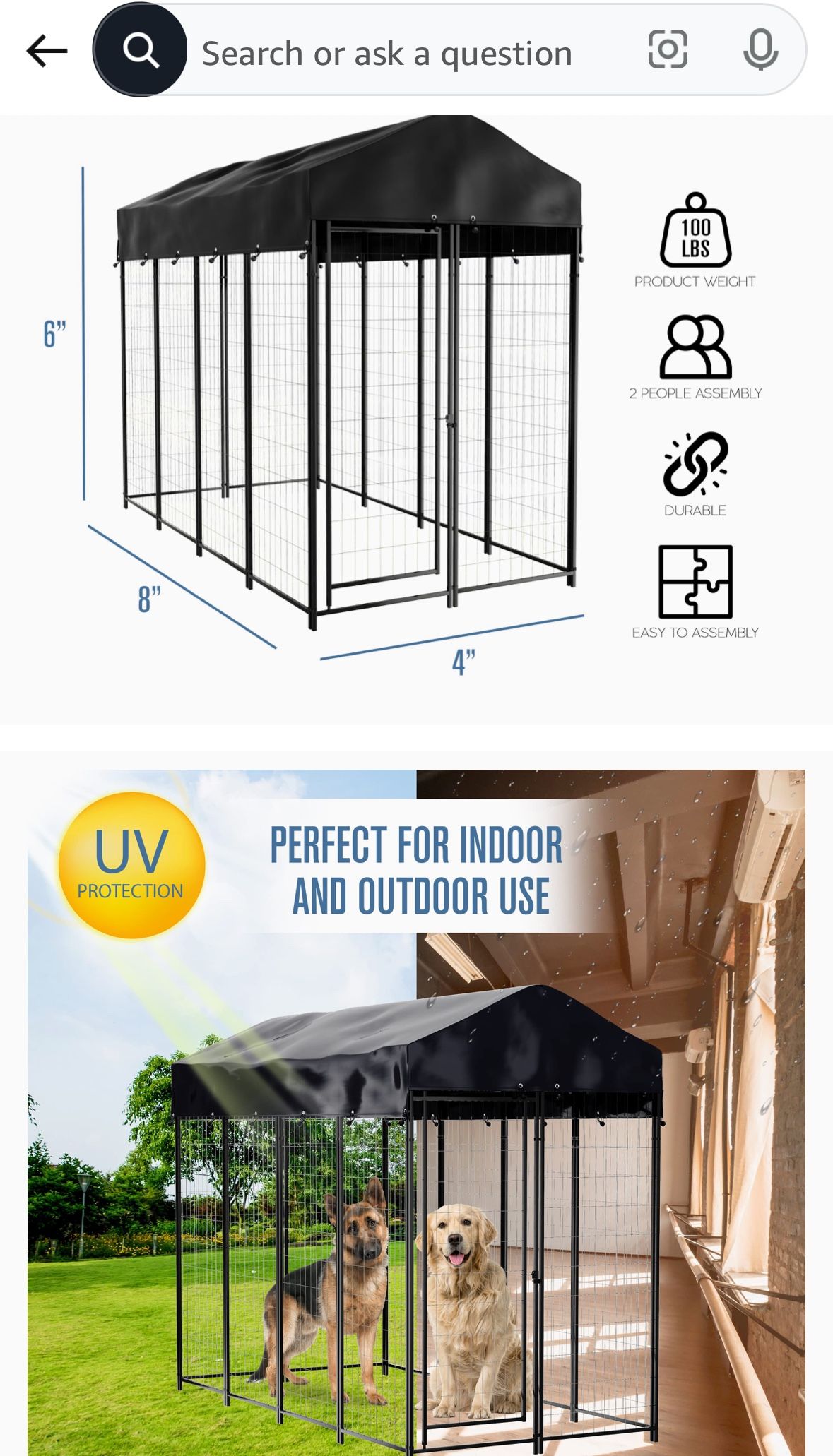 Dog Kennel Outdoor, Outside Kennels, Large Wire Crate, 4x8x6 Ft, Metal, Welded, Dogs Runs, w/Roof Cover, Big Enclosed Cage, Heavy Duty Pet Crates, Covered Box Run, Outdoors Pavilion Pen | Houseables You can see how much i paid for it