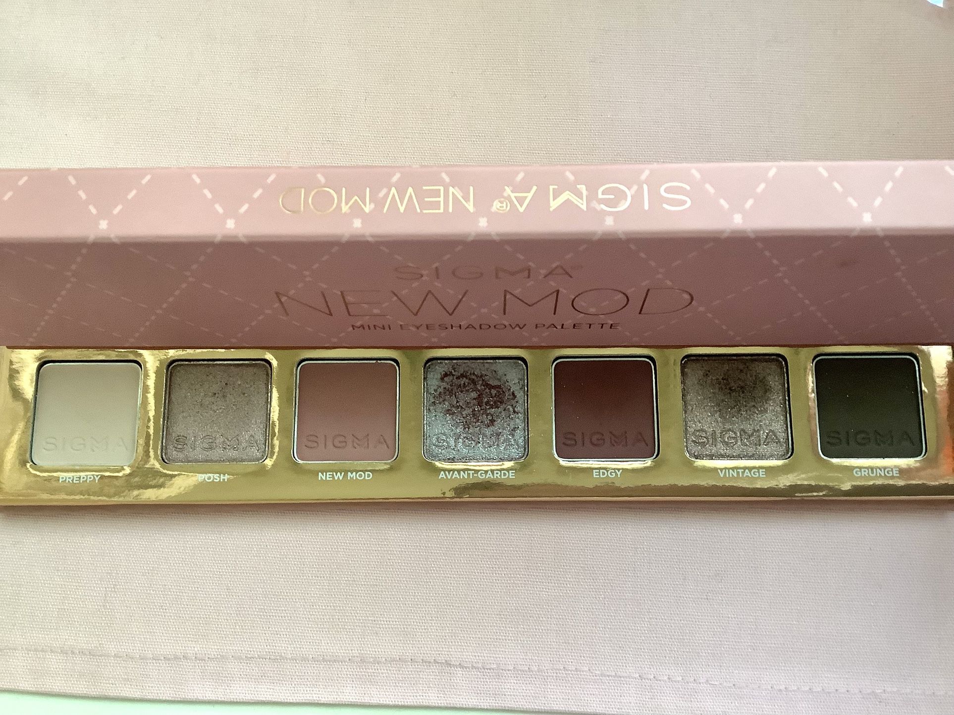Sigma Beauty New Mod mini eyeshadow palette. All colors were swatched with a brush. Has been sanitized and includes protective plastic sheet and box. Good condition!