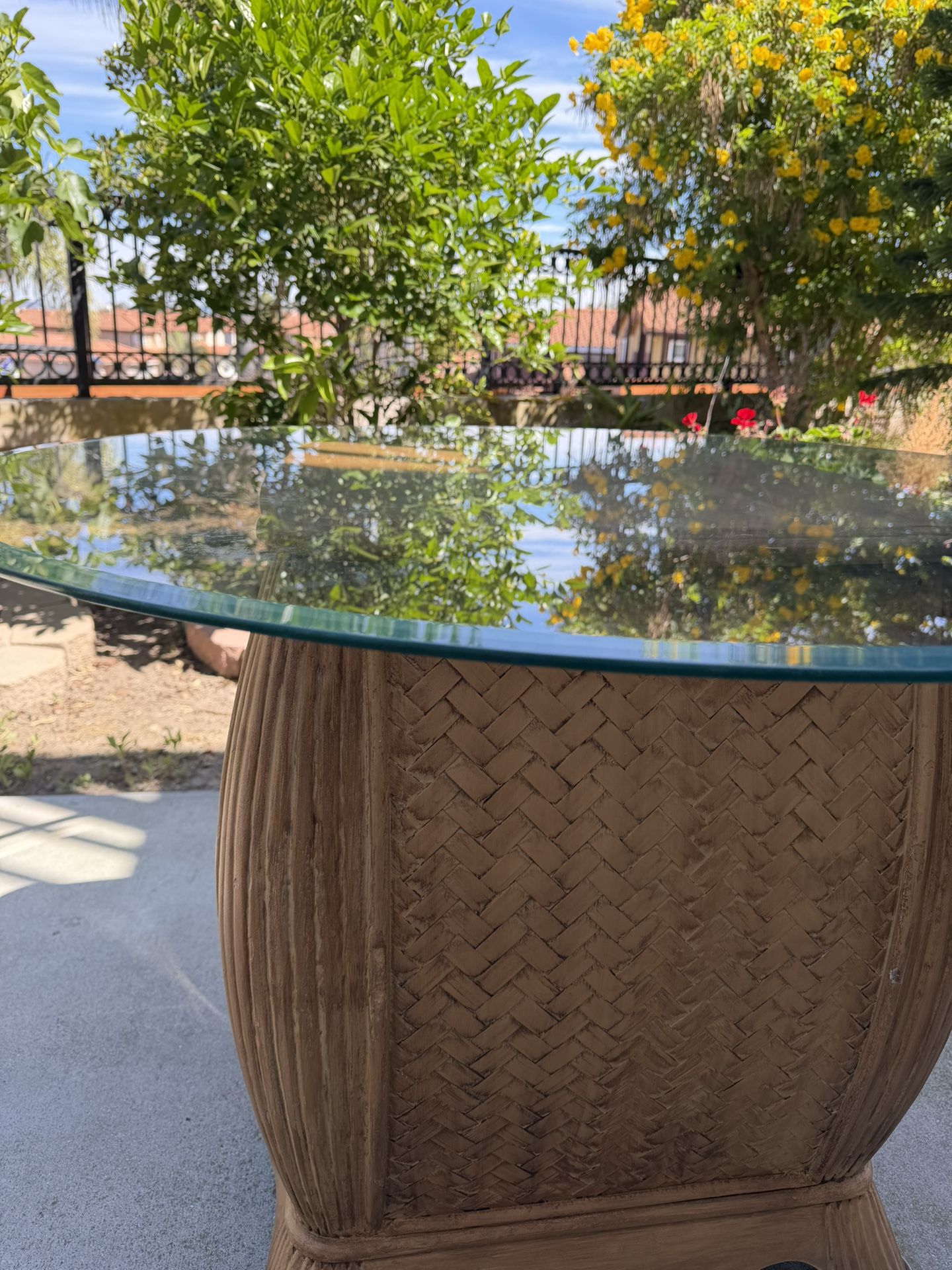 4 seater with glass top. It has 4 chairs not shown on the photo.