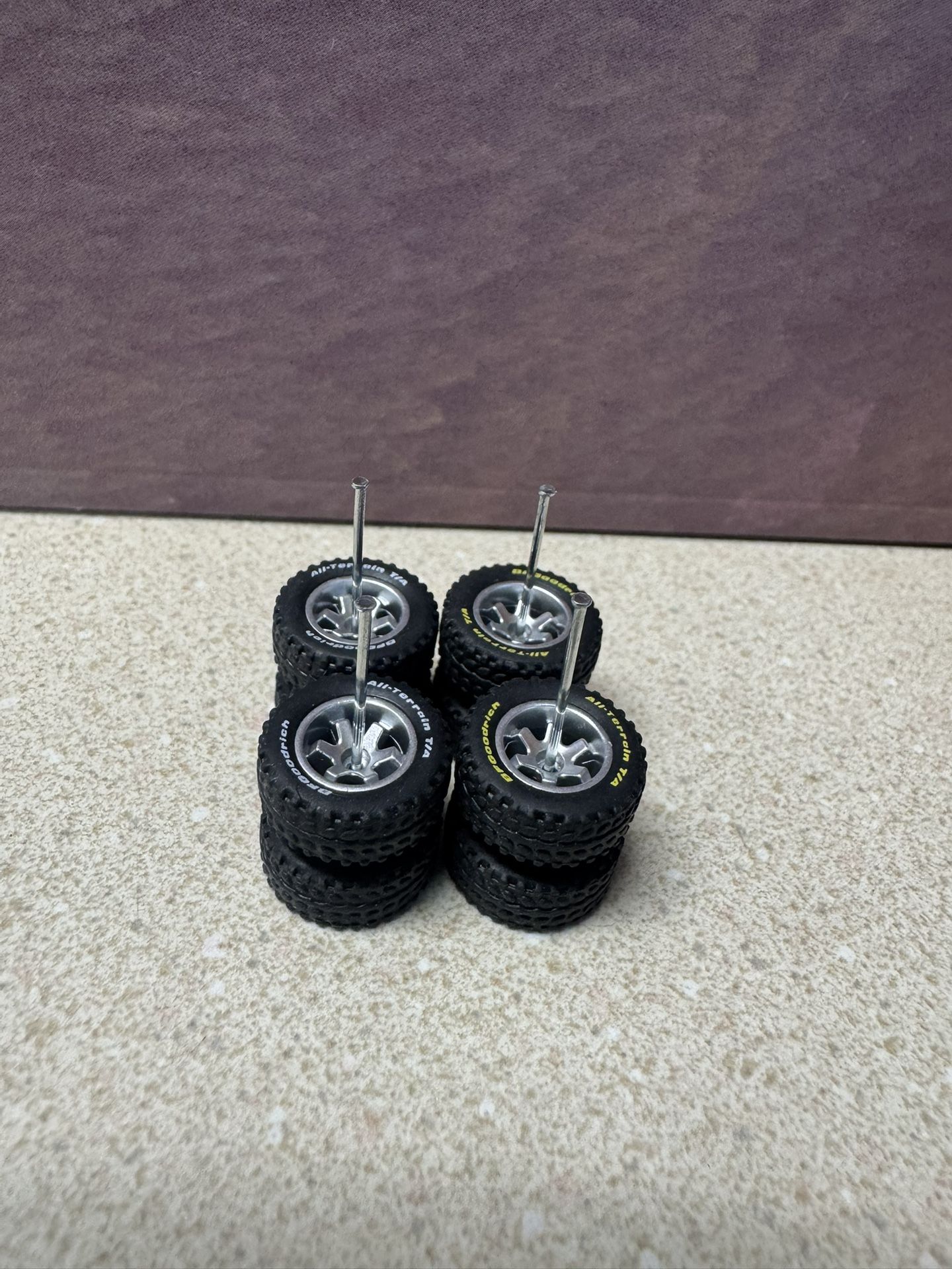 I won’t respond to “are these still available” Just let me know how many you want and when you can pick up. Thank you. I have 6 sets for wheels and tires. These are for custom hot wheels or matchbox. 1/64 scale. Same as Real Rider tires. These are marketed with BFG logos on the tires. $5 a set. Firm. $30 for all. Pick up in Gresham/Se Portland