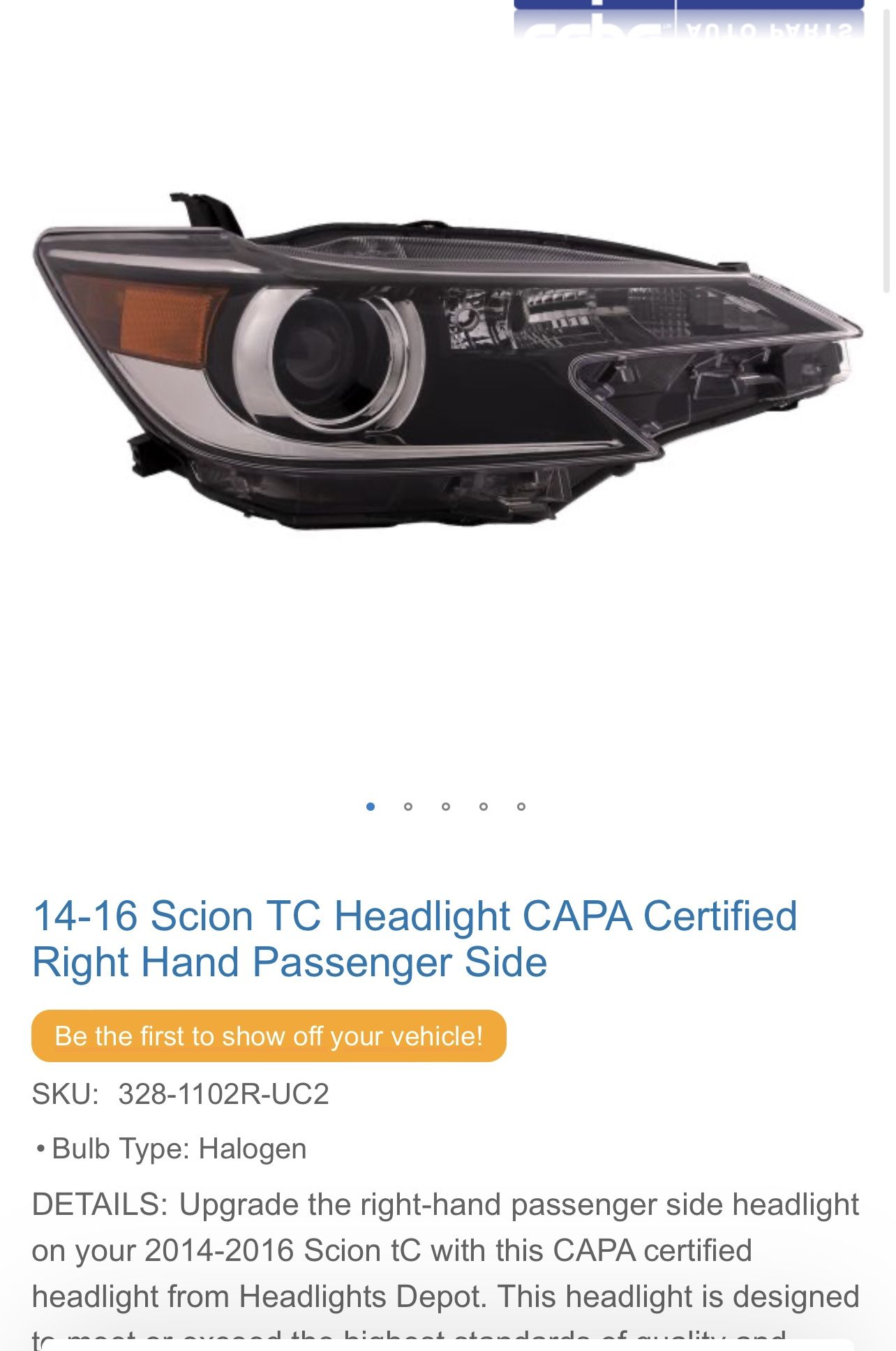 2014-2016 Scion Tc Right Headlight