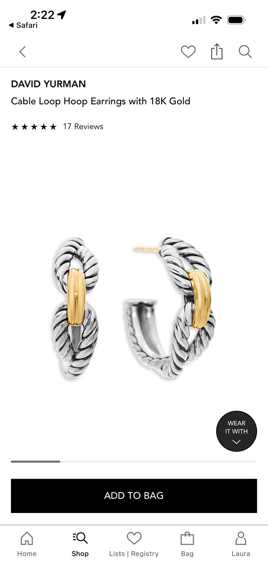 David Yurman Cable Loop Earrings And Ring With 18 Karat Gold Priced Separately