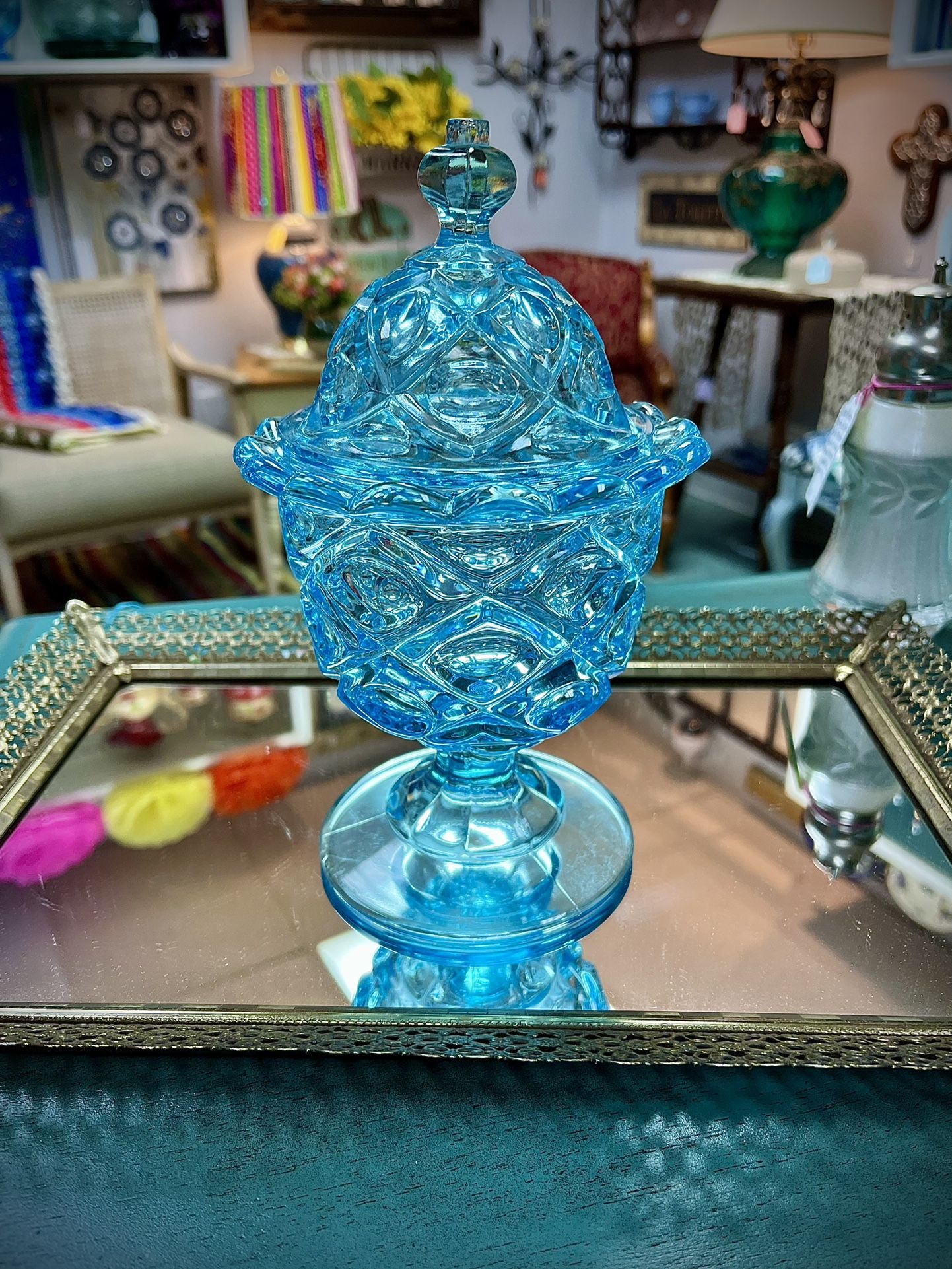 Vintage Aqua Mosser Summit Glass ‘Waffle & Dot’ Compote