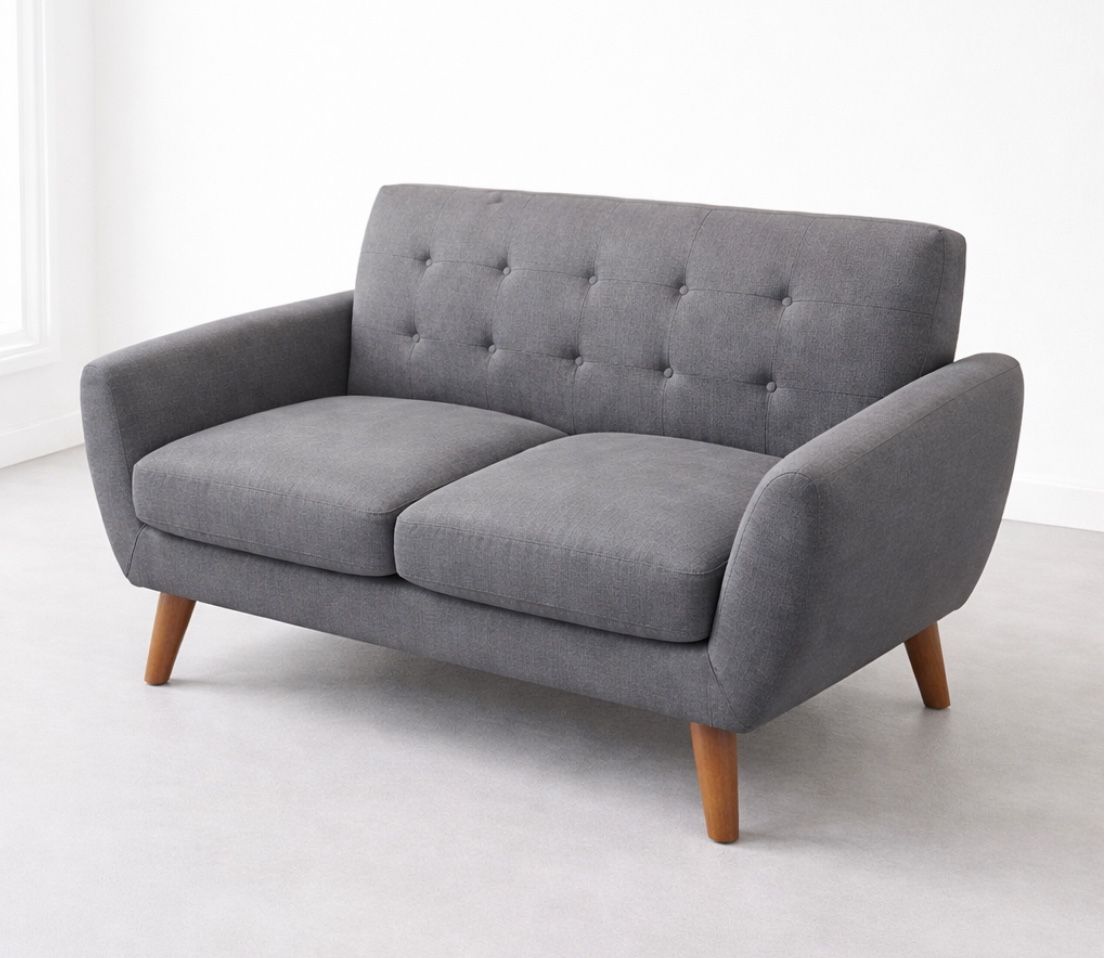 Mid century modern sofa! Like new! No pets and no smoking. Good condition! - Gray fabric with a tufted back and wooden legs. - pick up in vista or I can deliver for fee $150.00
