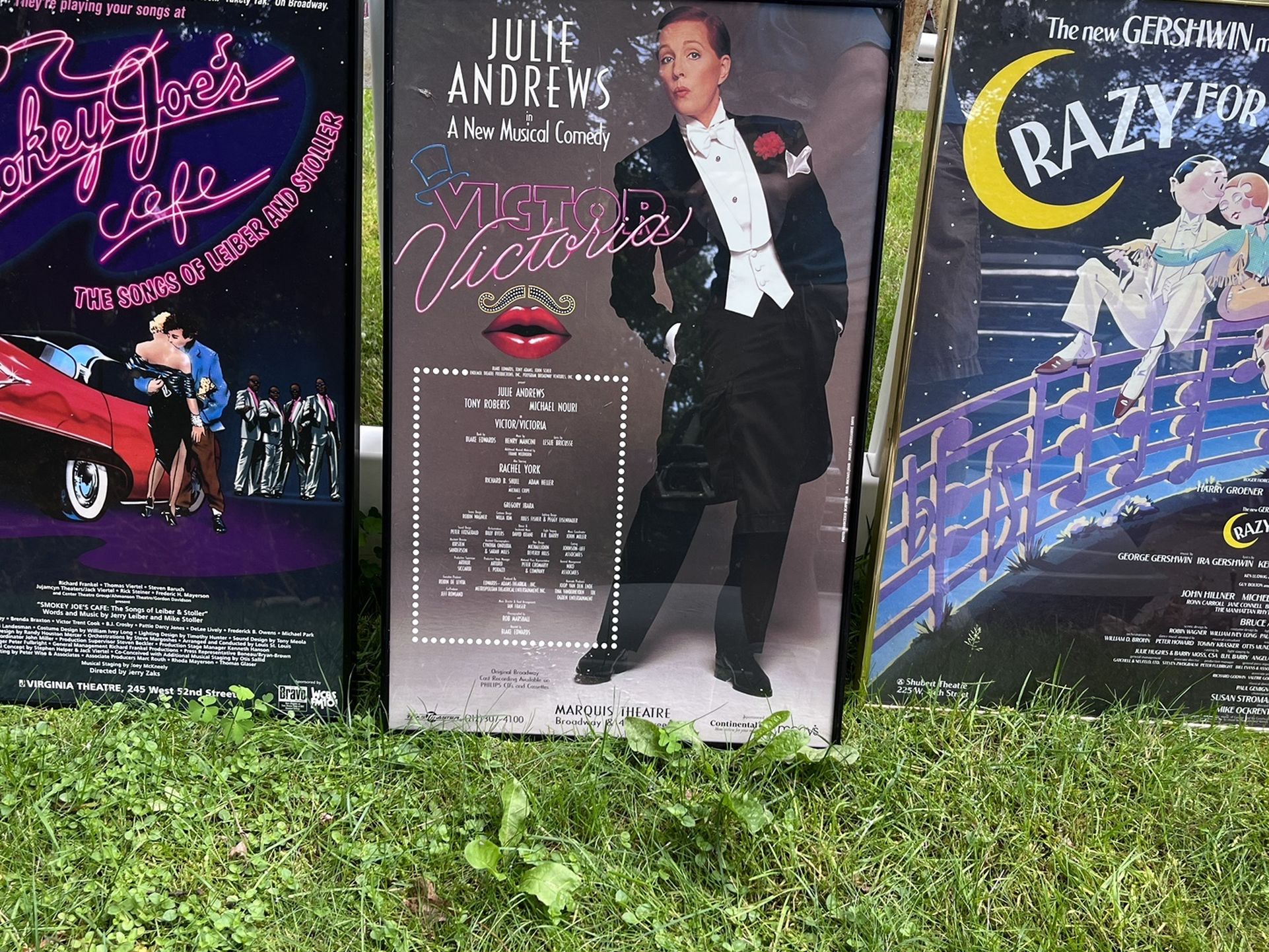 3 Broadway Posters Framed VICTOR VICTORIA, JULIE ANDREWS, MUSICAL COMEDY, BROADWAY WINDOW CARD/POSTER Smokey Joe’s Cafe Crazy For You