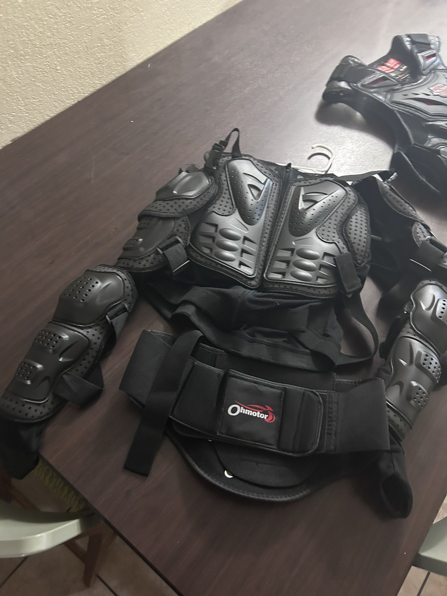 Ohmotor shielded vest new never used 50$ Icon vest used normal wear 30$ Snap on jacket used normal wear no paint or stain only that little wear in the picture shows 60$
