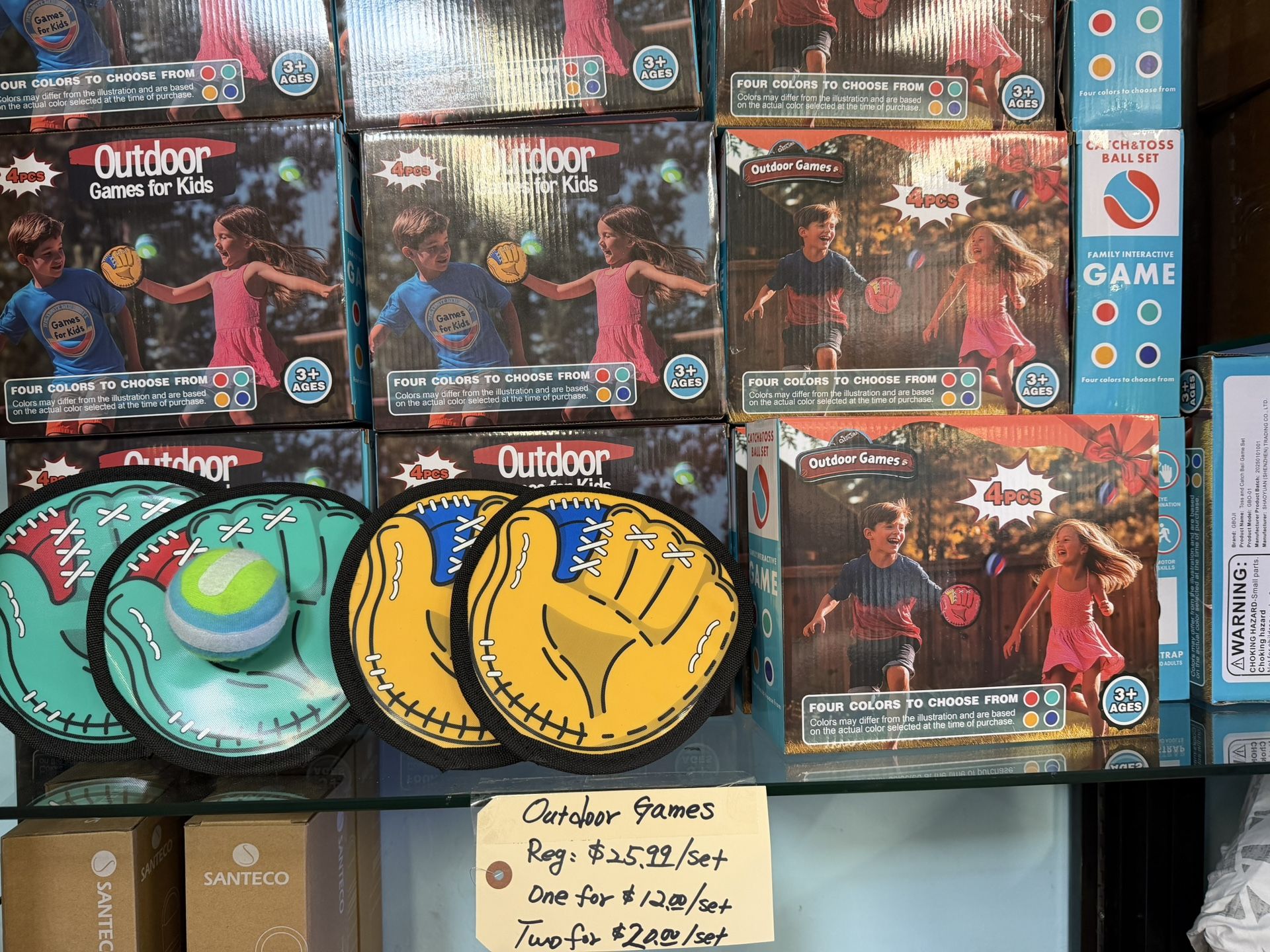 We have brand new children kids throwing outdoor game set. We also have many products in stock. We wholesale and retail One for $12.00, two for $20.00 Only Monday to Friday 9am-5pm Address: 2427 Pratt Ave., Hayward, ca 94544