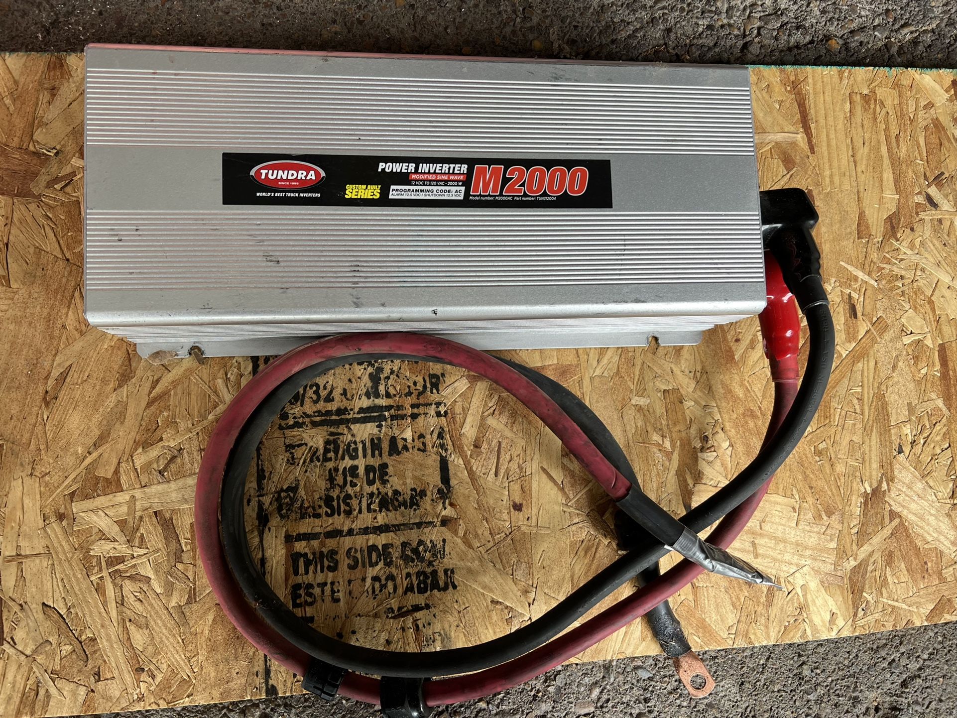 TUNDRA POWER INVERTER M2000 12 VDC to 120VAC - 2000w (without controller) Custom built series Truck Inverter used for Semi truck can be used for other applications! never failed me and used for appliances and fridge simultaneously while ron the road! Asking $200 (nearly new) Used from June to august 2022 (only at night) Retails $485 on Amazon and more on other sites lol