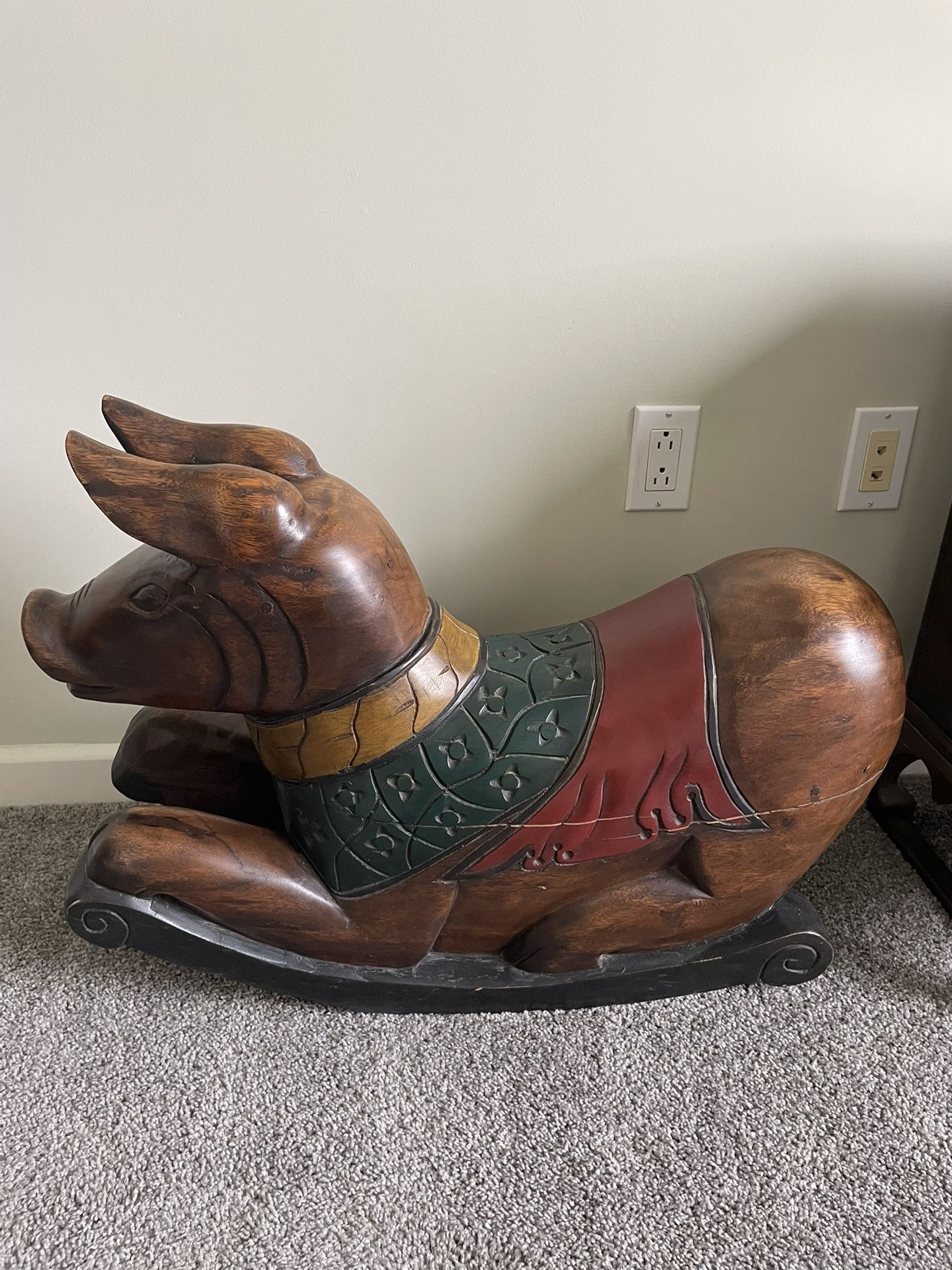 Hand Crafted Wooden Asian Rocking Pig