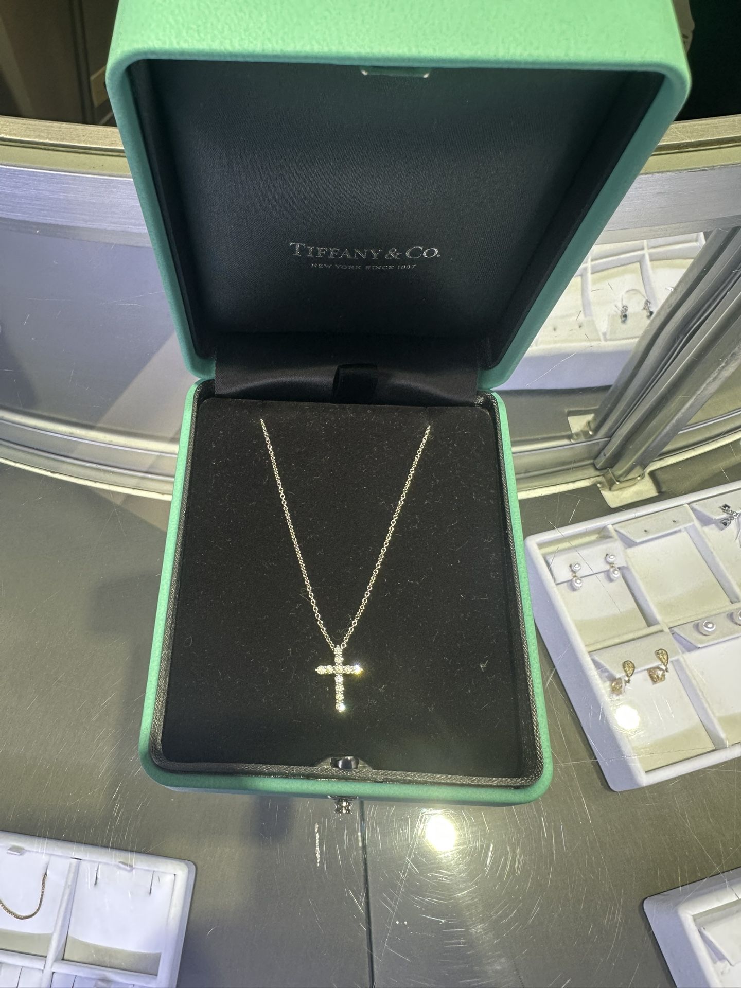 Tiffany & Co. Diamond Cross Necklace w/ Box