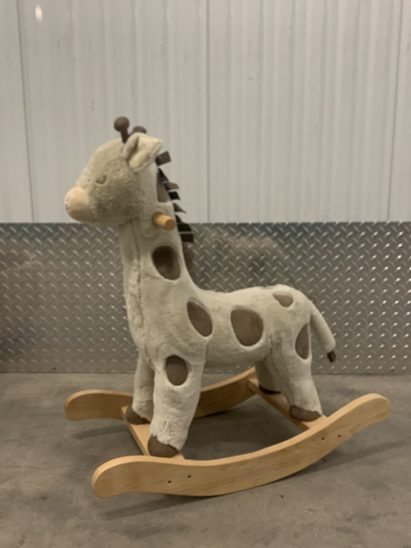 Very Gently Used From Clean Home That’s Smoke & Pet Free Little ones will love to go on make-believe animal adventures with this supremely soft and huggable giraffe rocker. It’s designed with solid wood handles and precision-shaped runners to ensure a smooth, secure and gentle ride. DETAILS THAT MATTER Made with super soft polyester. Runners are crafted of solid wood for a smooth, secure and gentle rocking motion. Filled with polyester fibers. Recommended for ages 1-5 years old. KEY PRODUCT POINTS 26" wide x 13.75" deep x 30" high Hypoallergenic. Imported.