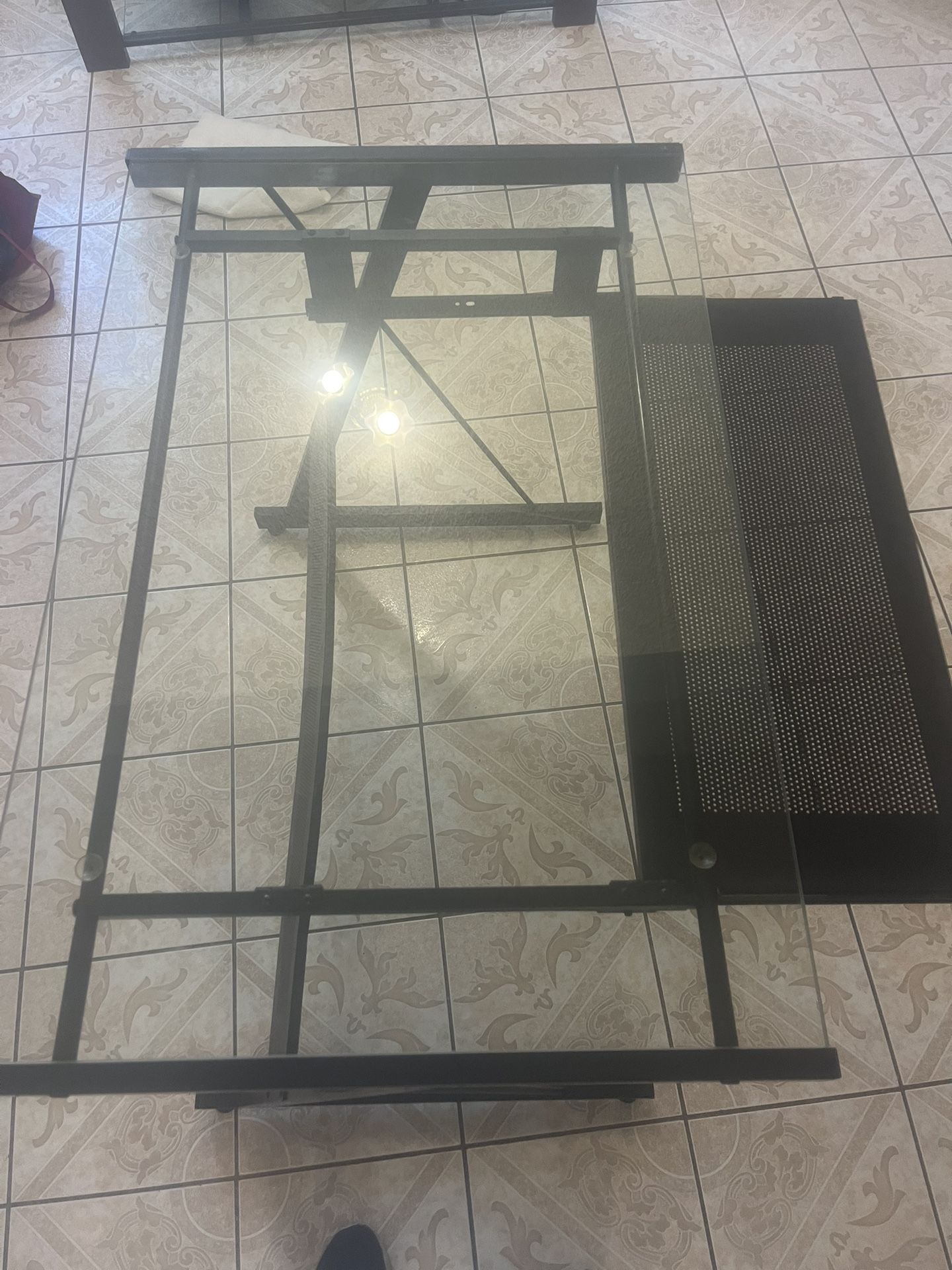Selling these 9 beautiful small desks, scrolling part for your keyboard, heavy glass for stability, no missing parts, the glass has a very little scratches almost not noticeable, the frame as well, but nothing major. Frame: metal; Color: Black; Table: glass (heavy) Measures: Width 37 In. / Depth 24 In. / High 30 In. Asking $25.00
