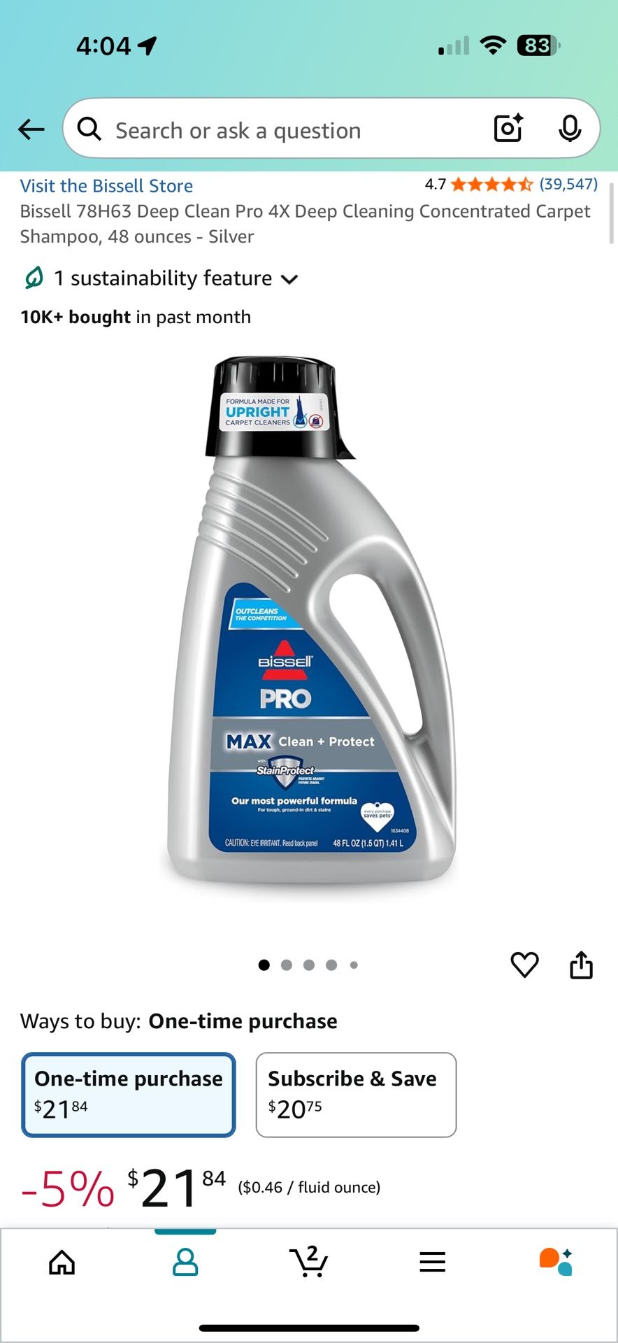Bissell 78H63 Deep Clean Pro 4X Deep Cleaning Concentrated Carpet Shampoo, 48 ounces