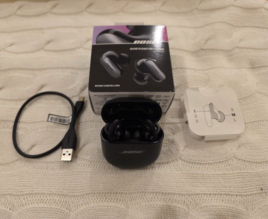 Like new Bose QC Ultra earbuds Hands down the best earbuds I've owned: - amazing sound quality - best active noise cancellation - amazing Bose app for IOS and Android I was recently gifted the generation 2 version of the headphones so I don't need these ones anymore. Comes with a silicone case cover that I bought for $30. Originally purchased headphones from Amazon for $299 earlier this year. Cash or cash apps only, no trades please.