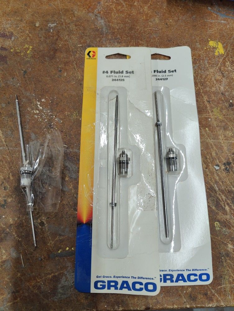 Lot of 3 Graco fluid sets for paint sprayers. 2 new, one used. As shown in the photos. There is no size marked on the used one. Pickup in Elyria.