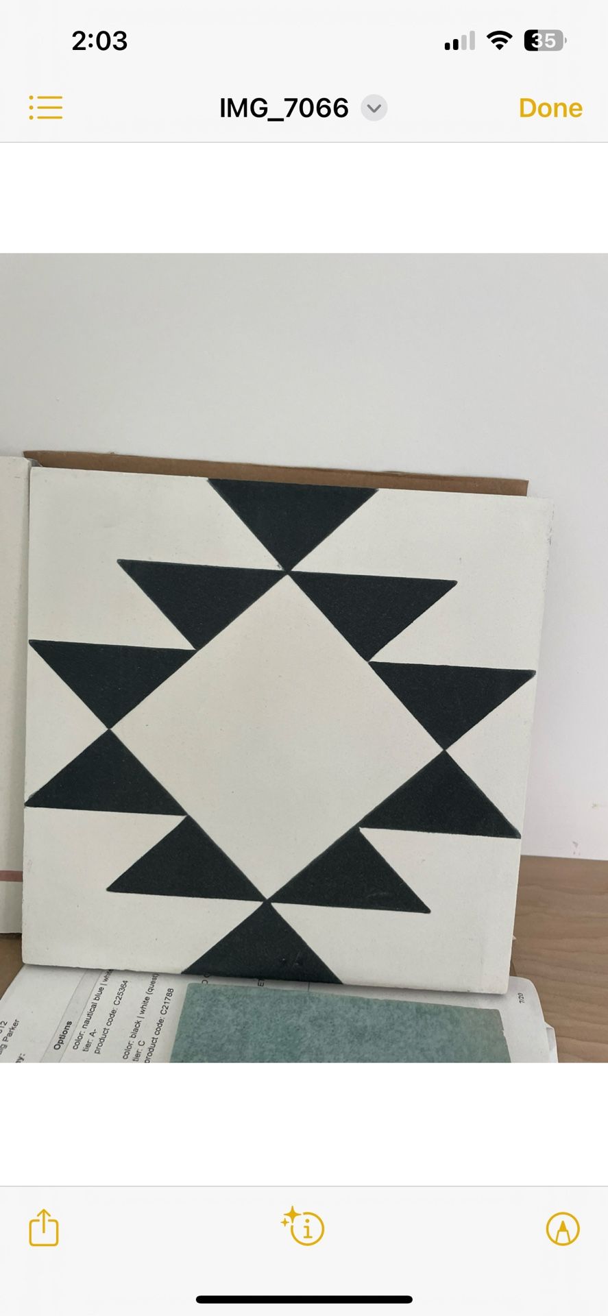 We have boxes of beautiful tile that we didnt use on our home available for sale. Basil hexagon- 39 sq feet, 9 boxes available Nautical blue and white 192 sq feet, 36 boxes Black and white Southwest 35 boxes 185 feet 3D blue tile strips 12 boxes Tera cotta square 223 feet, 43 boxes Blue and yellow star burst 20 boxes Gray spiral 8 boxes All $4-8 a tile!