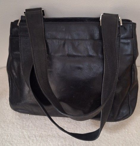 PERLINA NEW YORK BLACK LEATHER CROSSBODY SHOULDER BAG PURSE