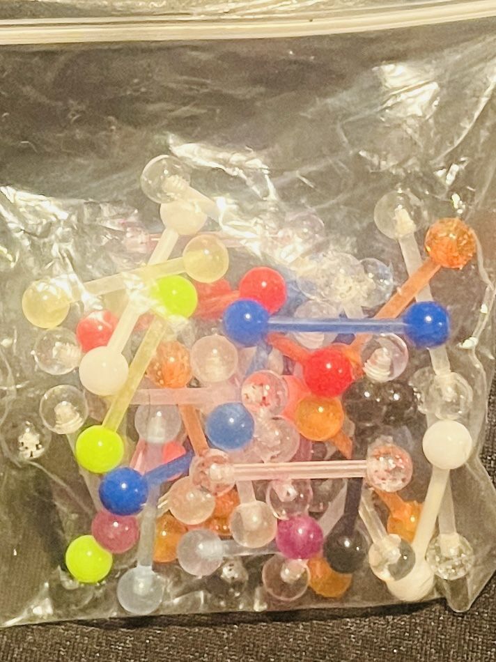 BAG OF ASSORTED COLOR ACRYLIC TOUNGE RING STUDS GREAT VALENTINES DAY GIFT!!