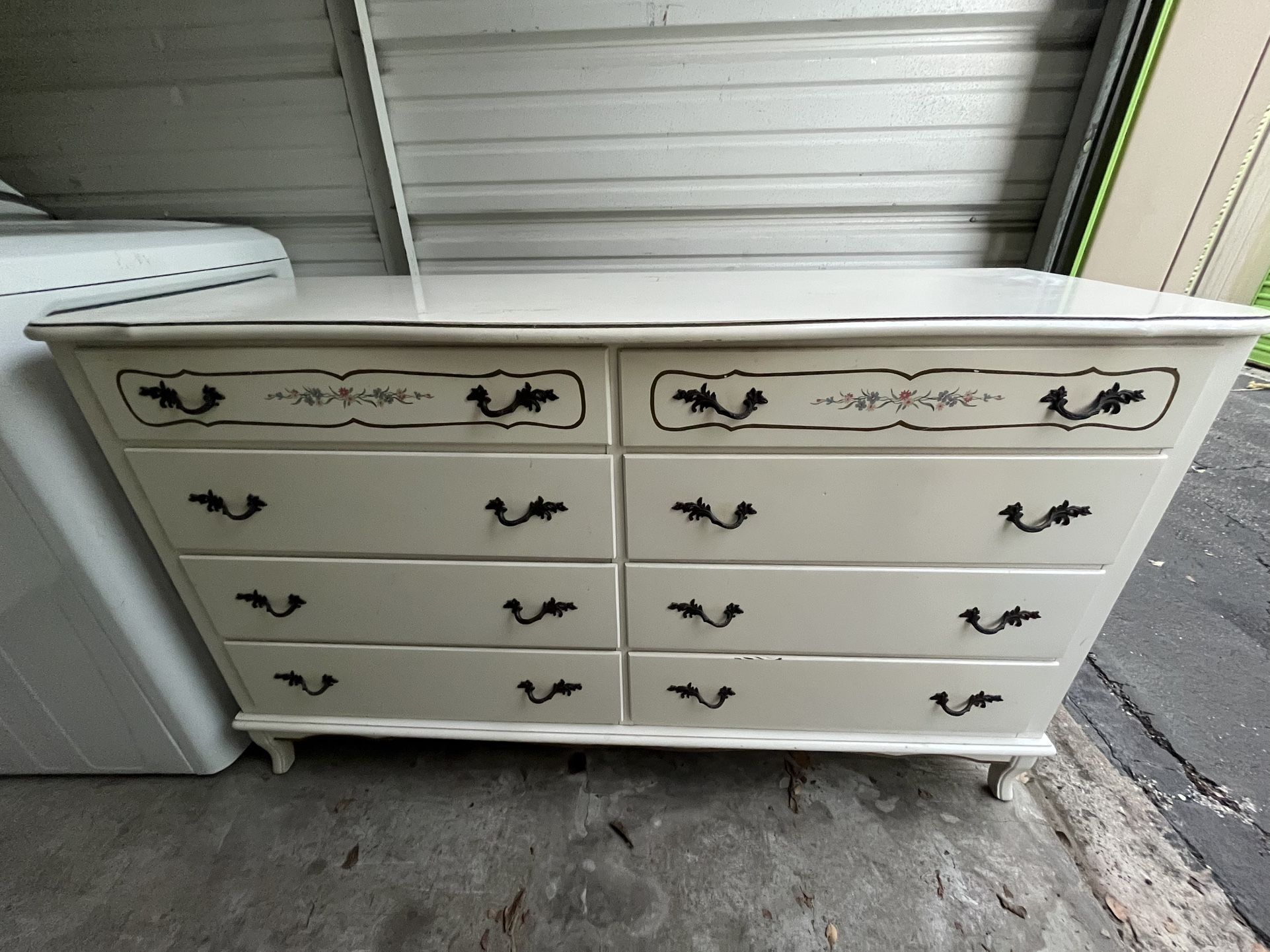 3 pieces, 1 mirror attaches to back of larger, shorter dresser. both dressers have some scratches on the corners/edges.