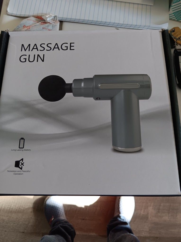 Pistola De masaje le dura bastante la carga biene con su cargador y todos los accesorios