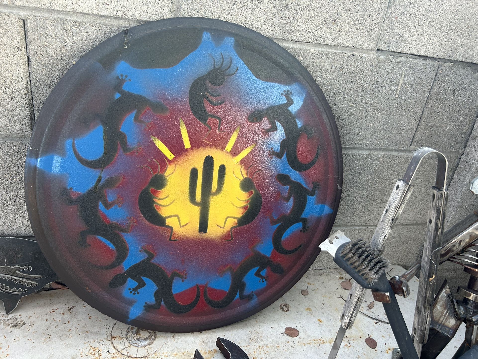 Steel Drum Lid, Painted By Joseph Welch Desert life