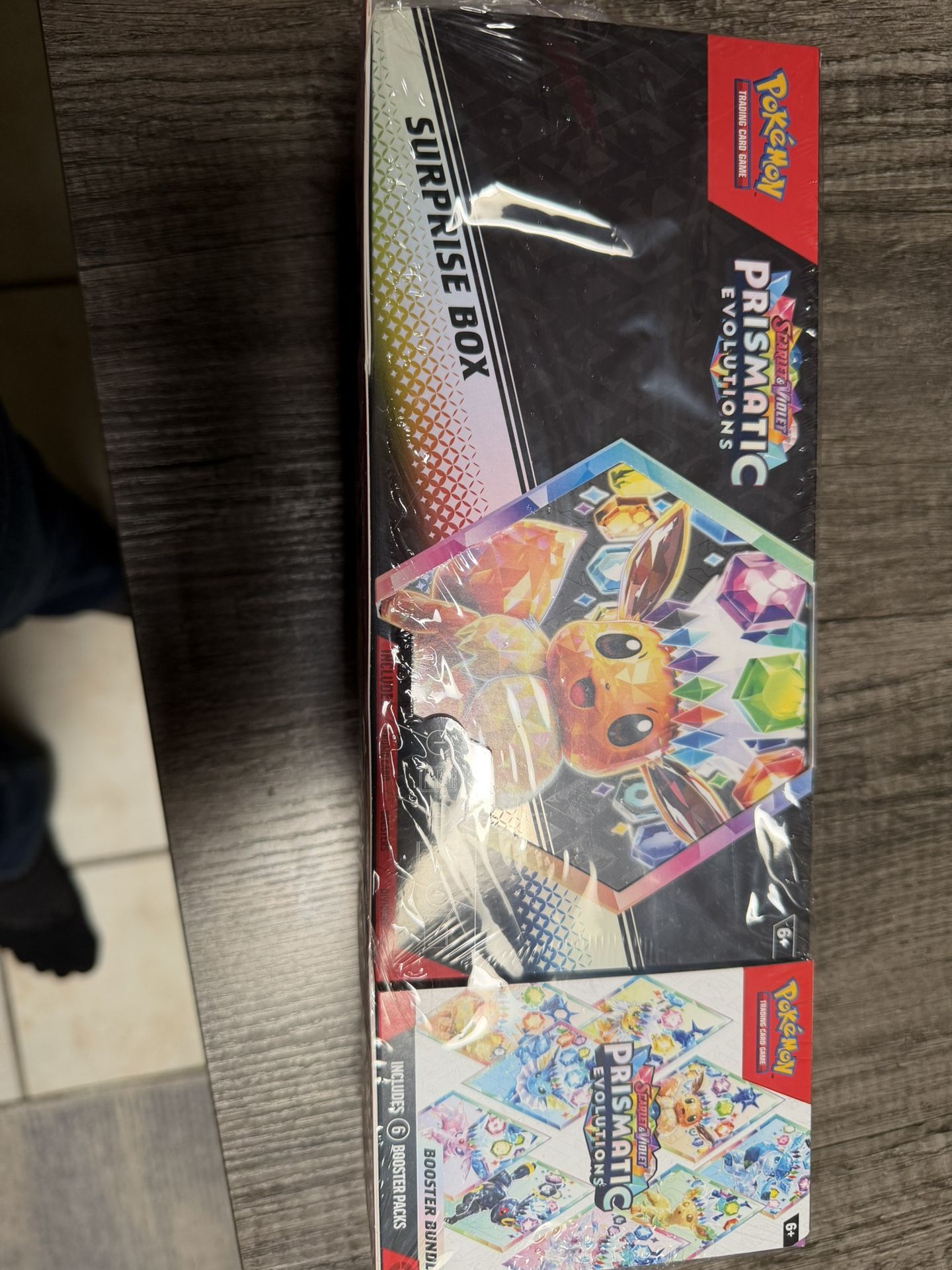 Sealed prismatic evolution bundle Prismatic evolution boost bundle Prismatic evolution surprise box Fresh and sealed. Market shows these going from $95 - $110 Looking for $90 Can deliver for extra depending on location. Pokemon Eevee Prismatic Evolution Pokémon TCG Booster Pack Booster box Booster bundle Surprise box