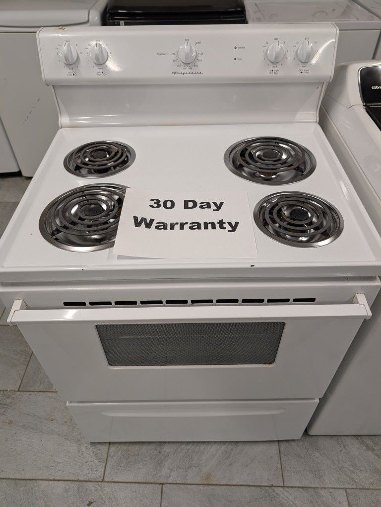 Works 100% perfect. No problems. Super clean inside and out. Brand new drip pans. All mechanical, no control board to go bad (common failure point on most stoves) The cord is included (3 or 4 prong, whichever one you need). I can plug it in if you want to see it working. If you have a broken stove that you want to bring for a discount, I may be able to give you a $20 discount for bringing it.
