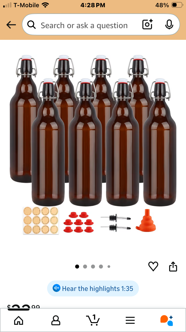 8 Pack 32oz Amber Swing Top Glass Bottles, Flip Top Brewing Bottles with Airtight Stopper for Vanilla Extract, Kombucha, Beer, Kefir, Mead