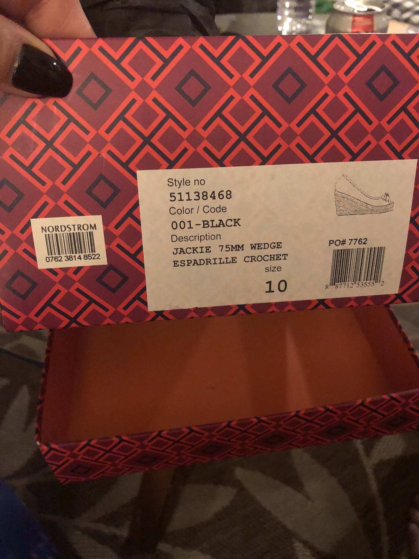 Tory Burch Black Lace Wedges with Gold tag logo ! EUC