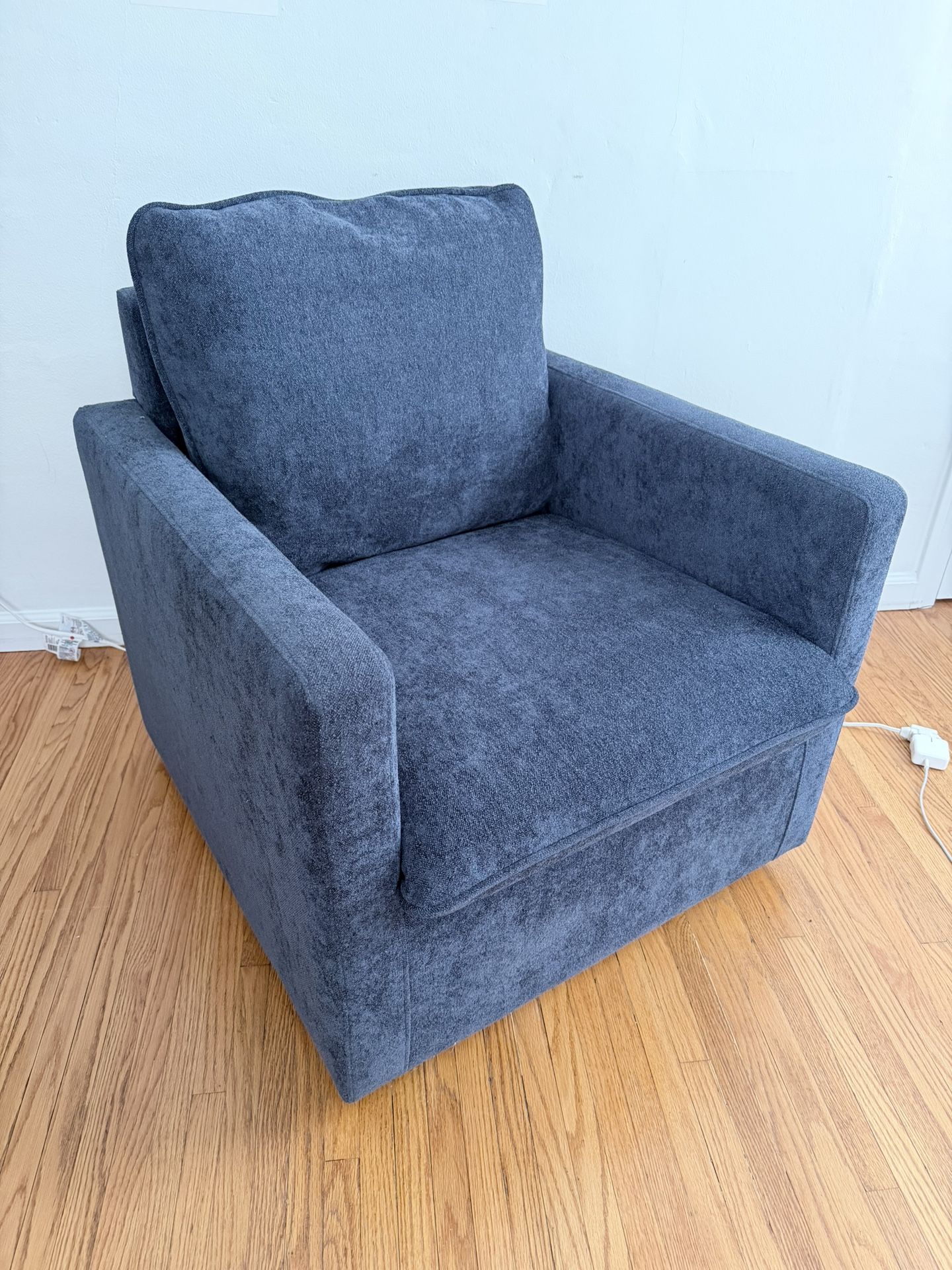 Indigo Midnight Blue Swivel Arm Chair, Like New, Comfortable